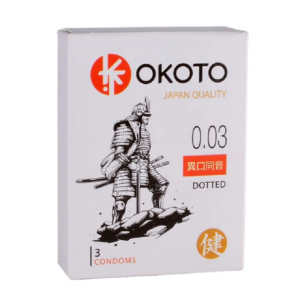 Okoto Dotted это уникальные презервативы с точечной текстурой в линейке продукции Okoto высочайшего качества для особенных ощущений с продлевающим эффектом. Стимулируют обоих партнеров благодаря особой текстуре презерватива при естественном контакте с кожей. Длина 180+/-5, ширина 52+/-2. Толщина 0,05+/-0,01 мм. В коробке 3 шт.
