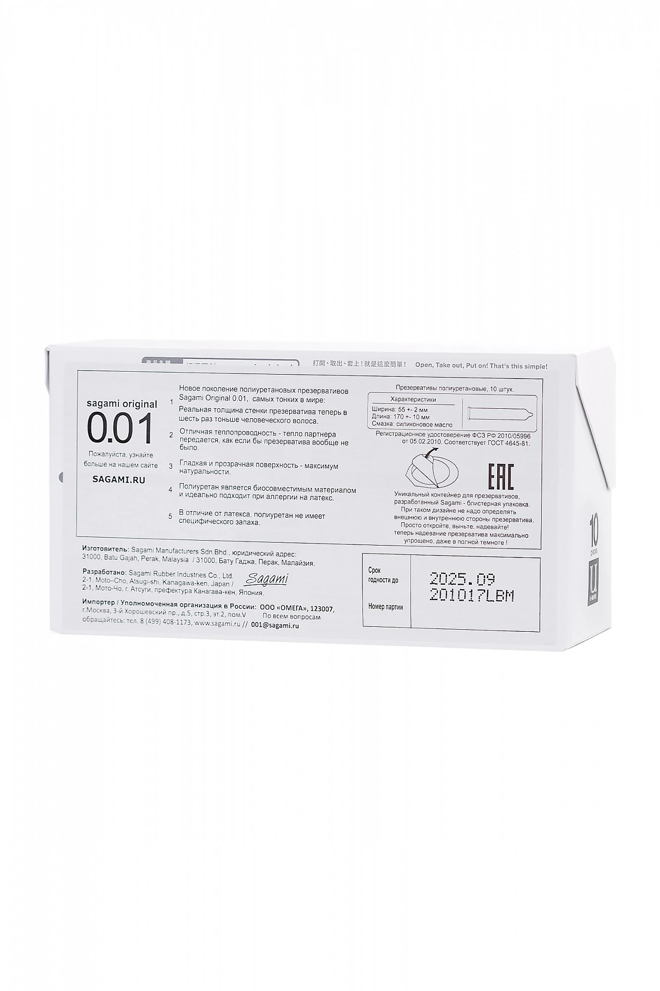 Революционные презервативы Sagami Original 0.01 произвели такой фурор в Японии, что продаются в другие страны в крайне ограниченных количествах. Нет, производителям их не жалко, просто японцы раскупают их так быстро, что на экспорт практически ничего не остается. Чем же они так хороши? Это новое поколение супертонких полиуретановых презервативов. Толщина в 0,01 мм настолько мала, что позволяет партнерам чувствовать только друг друга, а не презерватив. Несмотря на ультратонкие стенки, Sagami Original 0.01 очень прочны и так же надежно защищают, как их более плотные собратья. Они мгновенно принимают температуру тела человека и придают стимуляции совершенную естественность. Не содержат протеинов и химических катализаторов, а значит, полностью гипоаллергенны и подходят даже людям с аллергией на латекс. Полиуретановые презервативы обладают нейтральным ароматом и не раздражают «резиновым» запахом, как латексные. Берите максимум удовольствия от секса вместе с презервативами Sagami Original 0.01. В упаковке 10 шт.