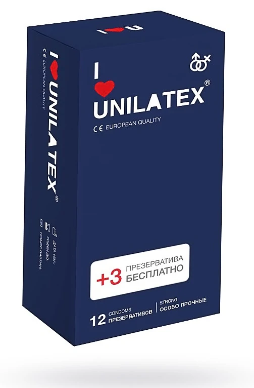 Unilatex Extra Strong - особопрочные презервативы из натурального латекса телесного цвета,гладкой поверхностью, покрыты силиконовой смазкой с нейтральным ароматом. Размеры: длина 190 мм, ширина 54 мм, толщина 0,08 мм. В упаковке 15 шт.