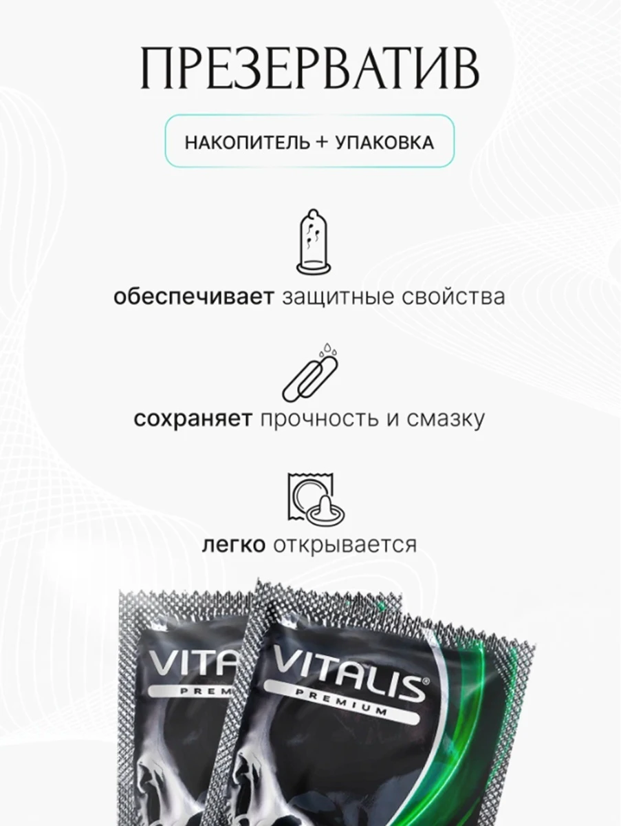Vitalis Comfort Plus – презерватив из натурального каучукового латекса, с силиконовой смазкой и накопителем. Контурная форма презерватива, с расширением в области головки полового члена обеспечит комфортные ощущения и максимальную защищенность. Так же Вы можете полагаться на надежную защиту, которую обеспечат презервативы Vitalis Comfort Plus. Размер: длина 18 см, диаметр 5,3 см, толщина стенки 0.07 мм. Смазка силикон. В упаковке 3 презерватива.