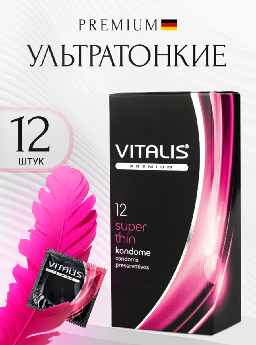 Максимальный комфорт при неизменном качестве: ультратонкий презерватив гарантирует яркость ощущений без ущерба для защиты.Насладитесь всей полнотой чувств!Презерватив из натурального каучукового латекса, ультратонкий, со смазкой и накопителем. Размер: длина 18 см, ширина 5,3 см, толщина стенки 0.055 мм. Смазка: силикон. Форма: цилиндрическая. Качество: ISO 4074:2002 В упаковке 12 презервативов.