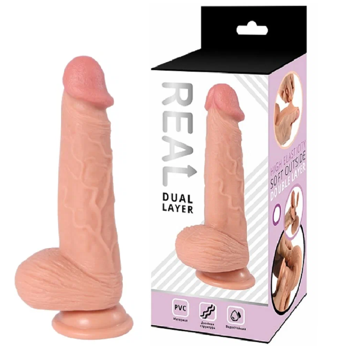 Real Dual Layer - реалистичный фаллоимитатор из высококачественного безопасного материала. Современная технология изготовления обеспечивает игрушке двойную структуру. Плотный стержень покрыт слоем мягкого и нежного, приятного на ощупь материала. Имитация имеет мягкую округлую головку, гибкое покрытое венками тело, упругую естественной формы мошонку. Присоска в основании позволяет надежно закрепить игрушку на любой гладкой поверхности или использовать в качестве страпона. Размер: общая длина 20 см, рабочая длина 14 см, диаметр 4 см. Для более комфортного использования рекомендуем приобрести смазку на водной основе и очищающий спрей Clear Toy 100 мл для обработки изделия.