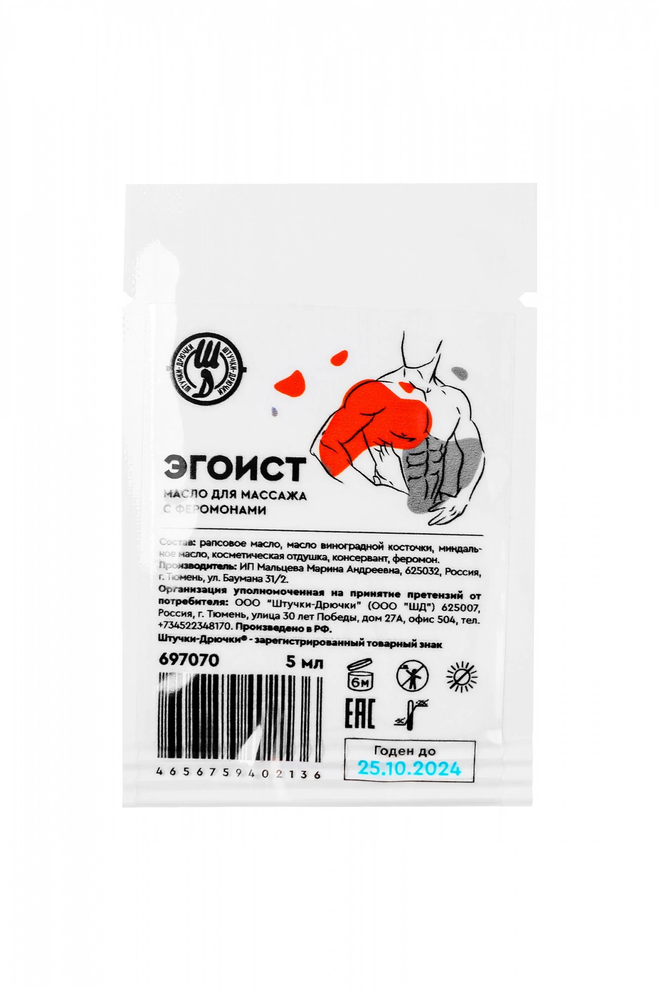 Расскажите о своих чувствах с помощью прикосновений – нежных и легких или страстных и интенсивных. Массажное масло с феромонами Эгоист; пробуждает сексуальное желание, снимает усталость и дарит прилив сил для эротического продолжения. Эгоист выбирают мужчины, заботящиеся о своем теле и женщины, которые заботятся о своих мужчинах. Волнующий пряный аромат брутального черного перца пробуждает спящие инстинкты, а природный феромон в составе масла, попадая на кожу, возбуждает и настраивает на тесный контакт. Роскошное звучание нероли и сладкой амбры раскрывается пленительным шлейфом. Ощутите как легко скользят ладони по телу, ведь натуральные масла миндаля и виноградной косточки увлажняют и питают кожу без ощущения жирности и липкости. Чувственный массаж – лучшее решение для романтического вечера, перетекающего в ночь страсти. Аромат - нероли, черный перец, цитрус, амбра, зелень, мускус.