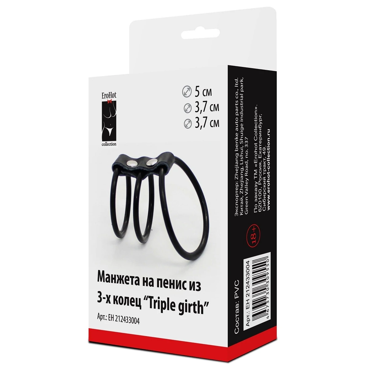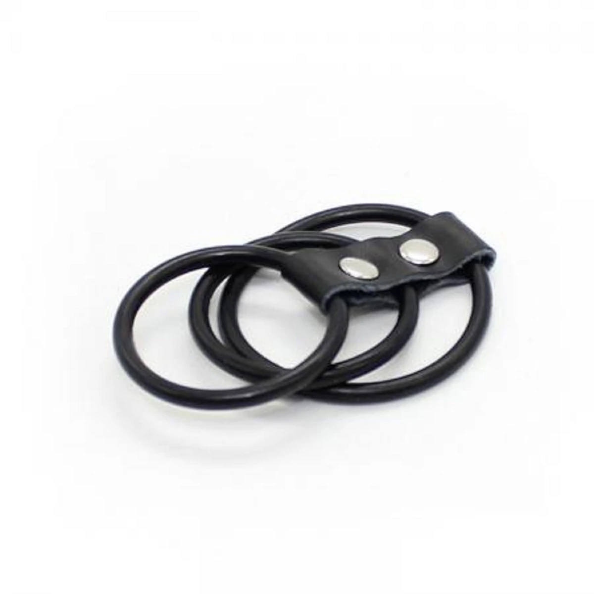 Манжета на пенис из трех гибких латексных колец скрепленная кожаным ремешком - это отличный аксессуар для истинных любителей фетиша. Размер: диаметр маленьких колец 3,7см, диаметр большого кольца 5 см. Материал: латекс, кожа. Цвет: черный.