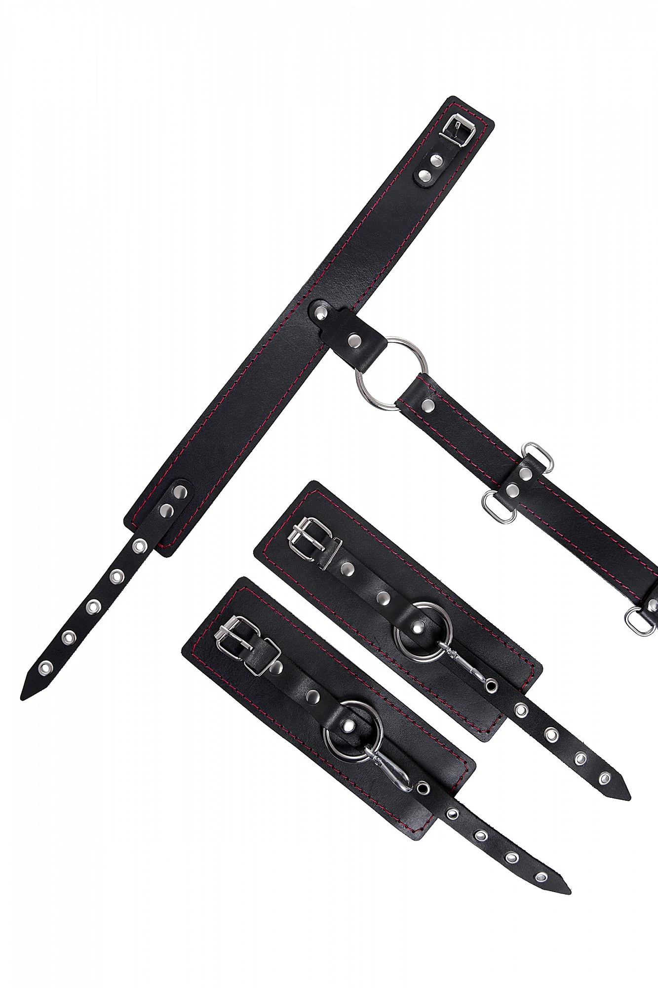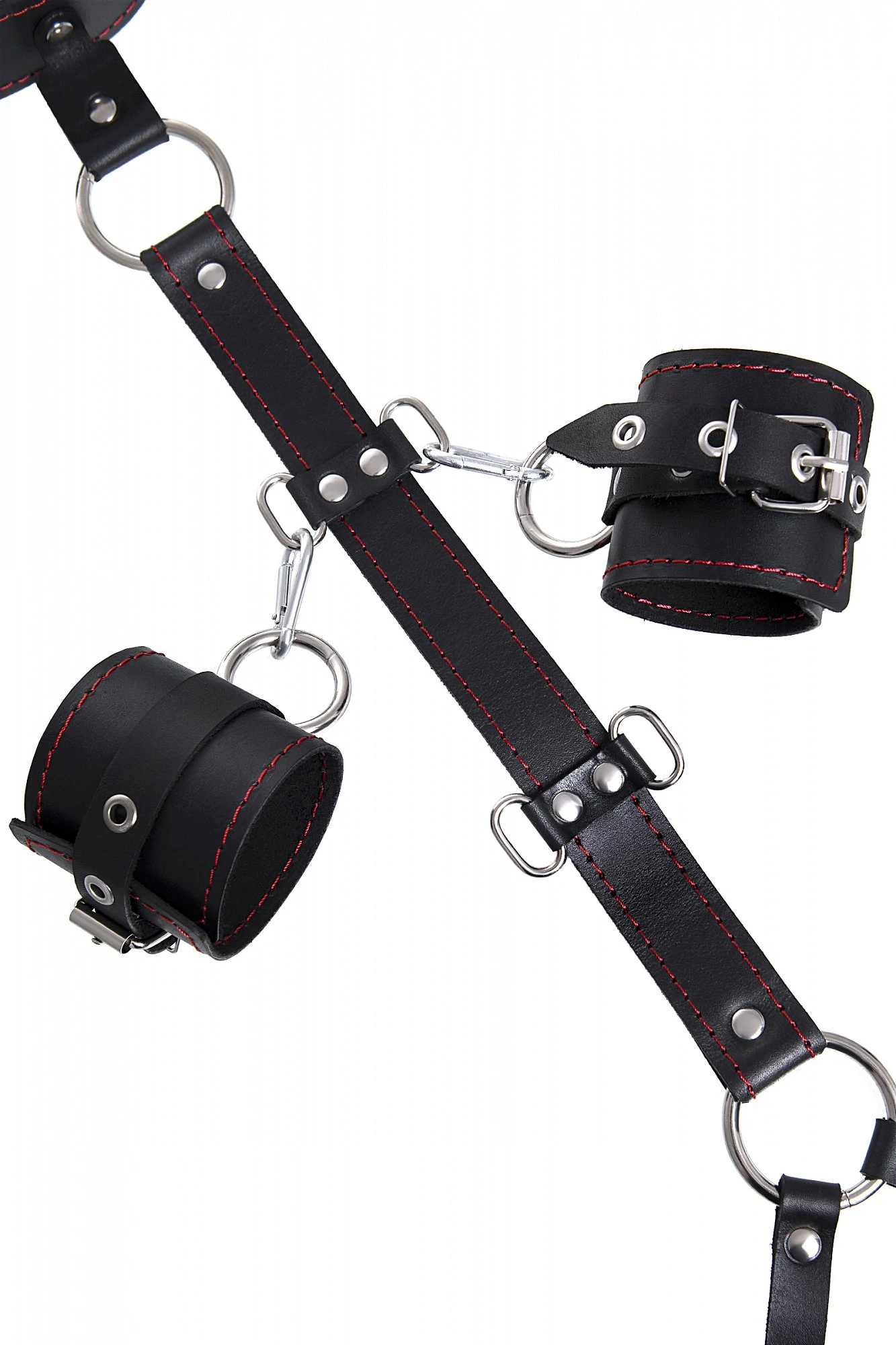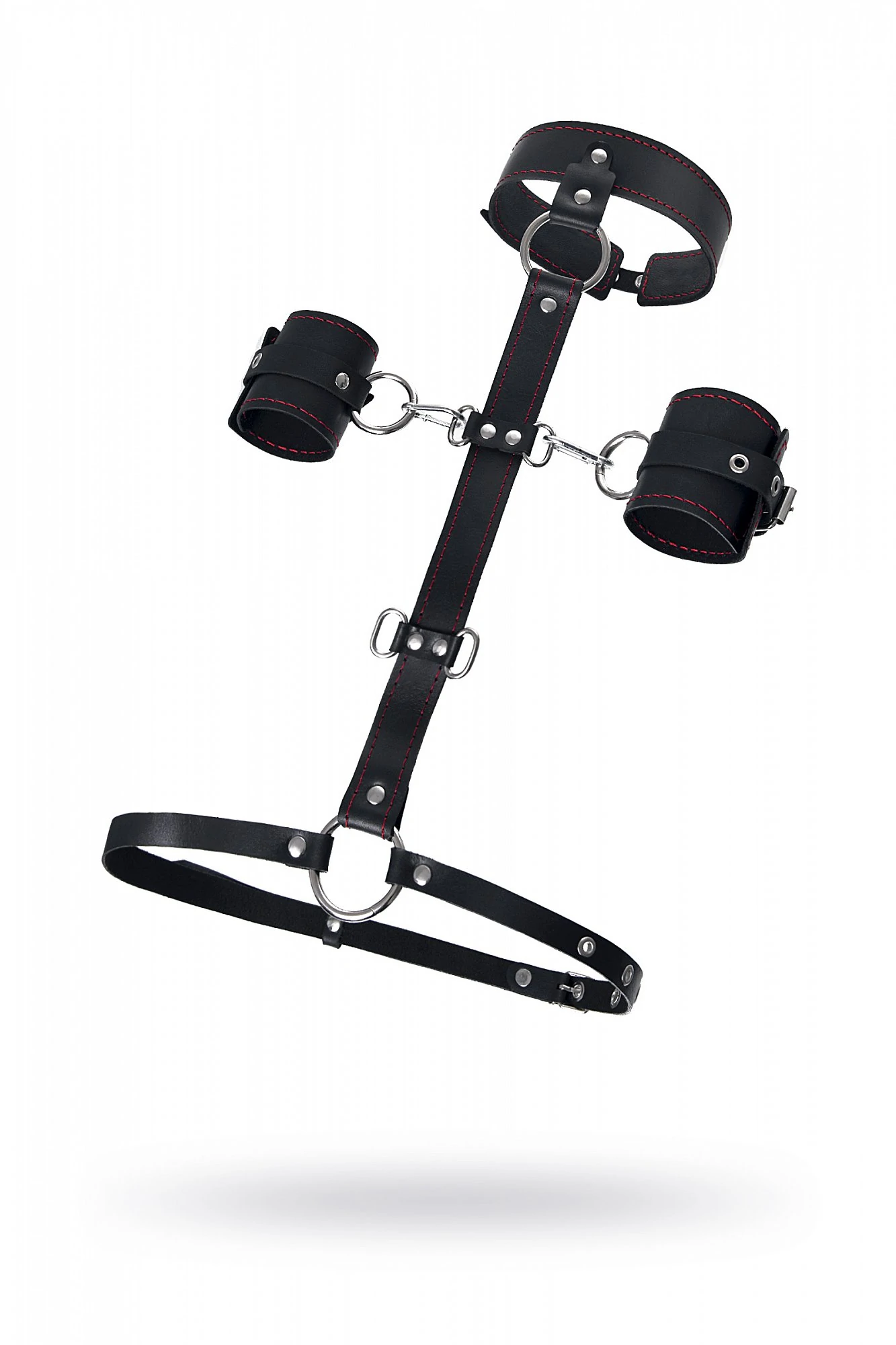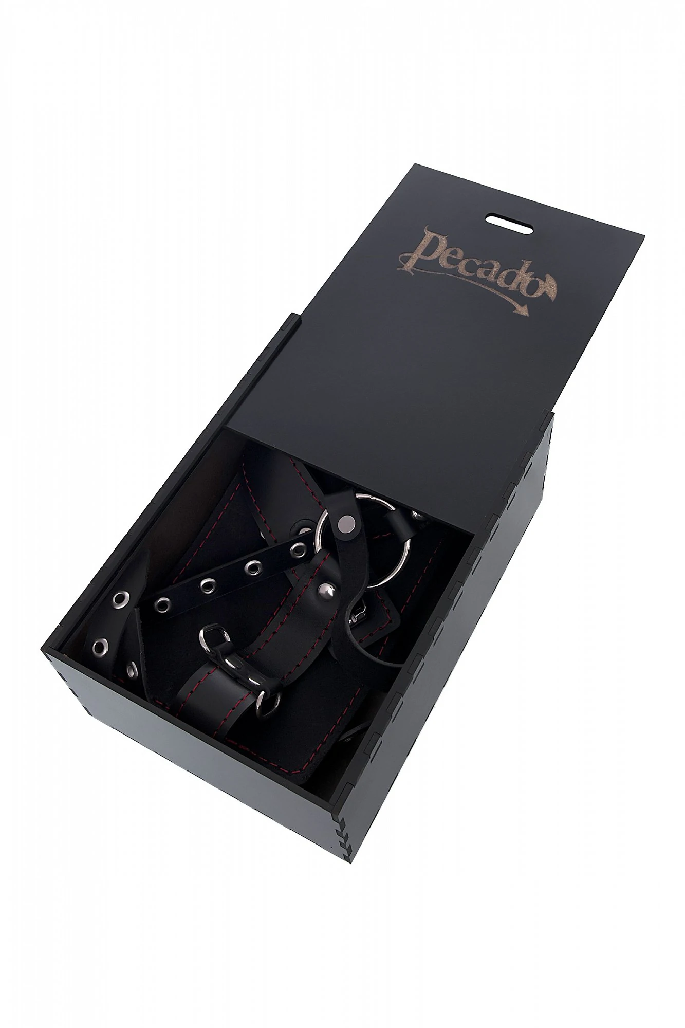 Набор для бандажа состоит из сбруи для фиксации шеи и пары наручников с контрастной строчкой красного цвета, всё это в фирменной деревянной коробке Pecado BDSM. Кожаная сбруя, состоит из ошейника соединенного с поясом на ремне. Два ряда металлических колец позволяют зафиксировать руки партнера в нужном положении с помощью пристегивающихся наручников. Однослойные кожаные наручники с контрастной строчкой красного цвета могут стать стильным аксессуаром на «свободных» руках. Кольца на ошейнике и поясе позволят присоединить и другие аксессуары при помощи карабинов и экспериментировать с позициями и ощущениями. С этим комплектом расширить возможности и способы фиксации проще простого! Варианты и комбинации ограничения свободы партнера зависят от вашей фантазии и желаний. Частичное обездвиживание и невозможность двигать руками дают вам полную власть над партнером – взрослые игры для взрослых. Материал: натуральная кожа. Цвет черный. Размер: ширина наручников 6,5 см, длина наручников 20 см.