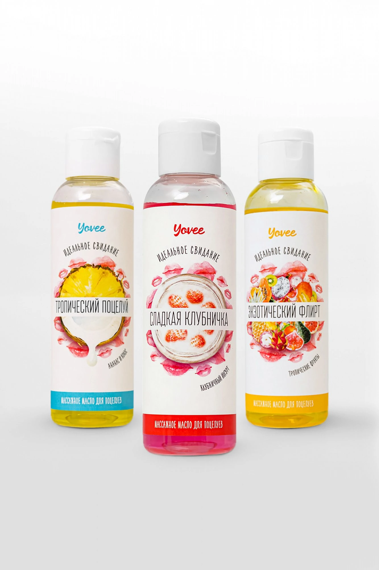Массажное масло для поцелуев Yovee Сладкая клубничка со вкусом клубничного йогурта сделает свидание незабываемым. Ароматный сладкий массажный продукт дополнит парный романтический вечер или станет сочным уходовым средством для самостоятельного использования. Ощутите, как кожа наполнится влагой, станет мягкой и упругой. Яркий десертный аромат опьянит, раскрываясь на горячей коже роскошным шлейфом. Налейте масло в ладони или на кожу, разотрите тонким слоем, чередуя нежные и интенсивные движения. Несмотря на натуральный и безопасный состав масла для поцелуев Yovee Сладкая клубничка - это концентрат, поэтому не рекомендуется пить масло из флакона. Продукт не подходит для использования в качестве лубриканта. Идеи для свидания: Предложите партнеру сладкий массаж с особенной прелюдией. Лейте масло вдоль спины медленно, массируйте сначала ладонями, а затем телом. Начните слизывать приятное на вкус масло прямо с кожи. Не забудьте поменяться местами, предложив партнеру себя как десерт.