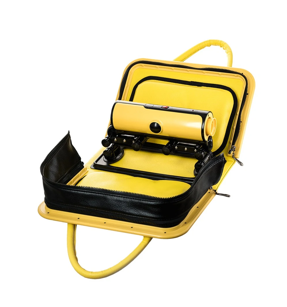 Представляем Вам новинку - секс-машину в сумочке, украшенной стразами! Имеет 3 скорости в диапазоне от 90 до 180 фрикций в минуту, переключаемые при помощи удобного пульта ДУ. Кнопка "А" - переключение скорости. Кнопка "В" - включение функции насадки (это может быть вибрация, подогрев или ротация, в зависимости от модели насадки). Кнопка "Н" - переключение на максимальную мощность. Конструкция секс-машины позволяет подобрать любой угол наклона и высоту. Секс-машина имеет очень компактные размеры, легкий вес. Очень устойчивая. В комплекте: сумка, секс-машина, насадка - фаллоимитатор с подогревом (рабочая длина 14,5 см, диаметр 3,5 см), пульт ДУ, блок питания, 2 подушечки (размер 18*27*2 см). Цвет: в ассортименте. Питание: 220 В. Вес машины: 2,9 кг. Размеры упаковки (В*Д*Ш): 36 * 26 * 14 см. Размер сумки: 34*23*13 см.