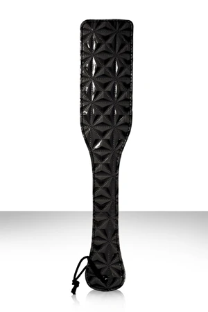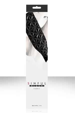 Темный цвет – это сексуальность, поэтому в этой коллекции использован именно полуночный черный. Выпуклая, трехмерная текстура черного винила – очень рельефная и необычная на ощупь. Элементы из настоящей кожи придают фетишиское очарование. Шлепалка Sinful Paddle виниловая черная удобно ложится в руку. Легкая и прочная. Двухстороння шлёпалка идеальный способ познакомиться с удовольствием, получаемым от шлепков. Специальная форма обеспечивает большую площадь покрытия, а длинная ручка упрощает контроль и процесс шлепков. Идеально подходит как для новичков, так и для истинных ценителей. Длина 32 см, ширина 6 см, ширина ручки 3,5 см. Цвет: черный. Материал: винил, кожа.