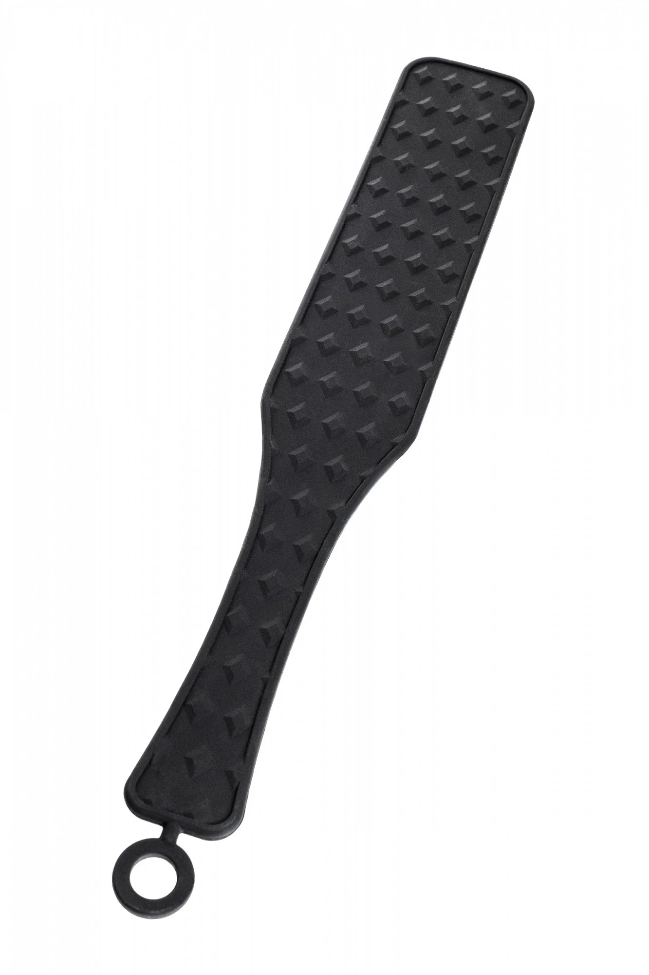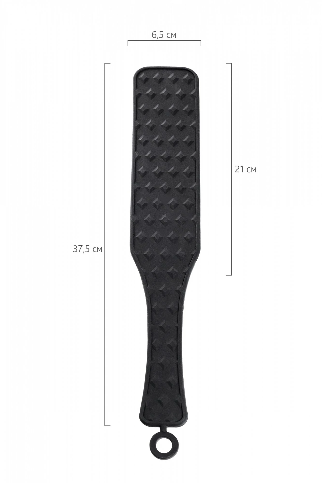 Шлепалка Знаменитый пэддл - аксессуар для наказания, заменяющий ладонь. Шлепки могут быть мягкими и жесткими в зависимости от вашего настроения. Полностью силиконовая шлепалка приятна в использовании для обоих партнеров. С одной стороны она покрыта бриллиантовым рельефом и при сильных шлепках оставит на коже соответствующий узор. С другой стороны она абсолютно гладкая и ощущения от наказания будут более мягкими. Общая длина 37,5 см. Рабочая длина 21 см. Ширина 6,5 см. Материал: силикон.