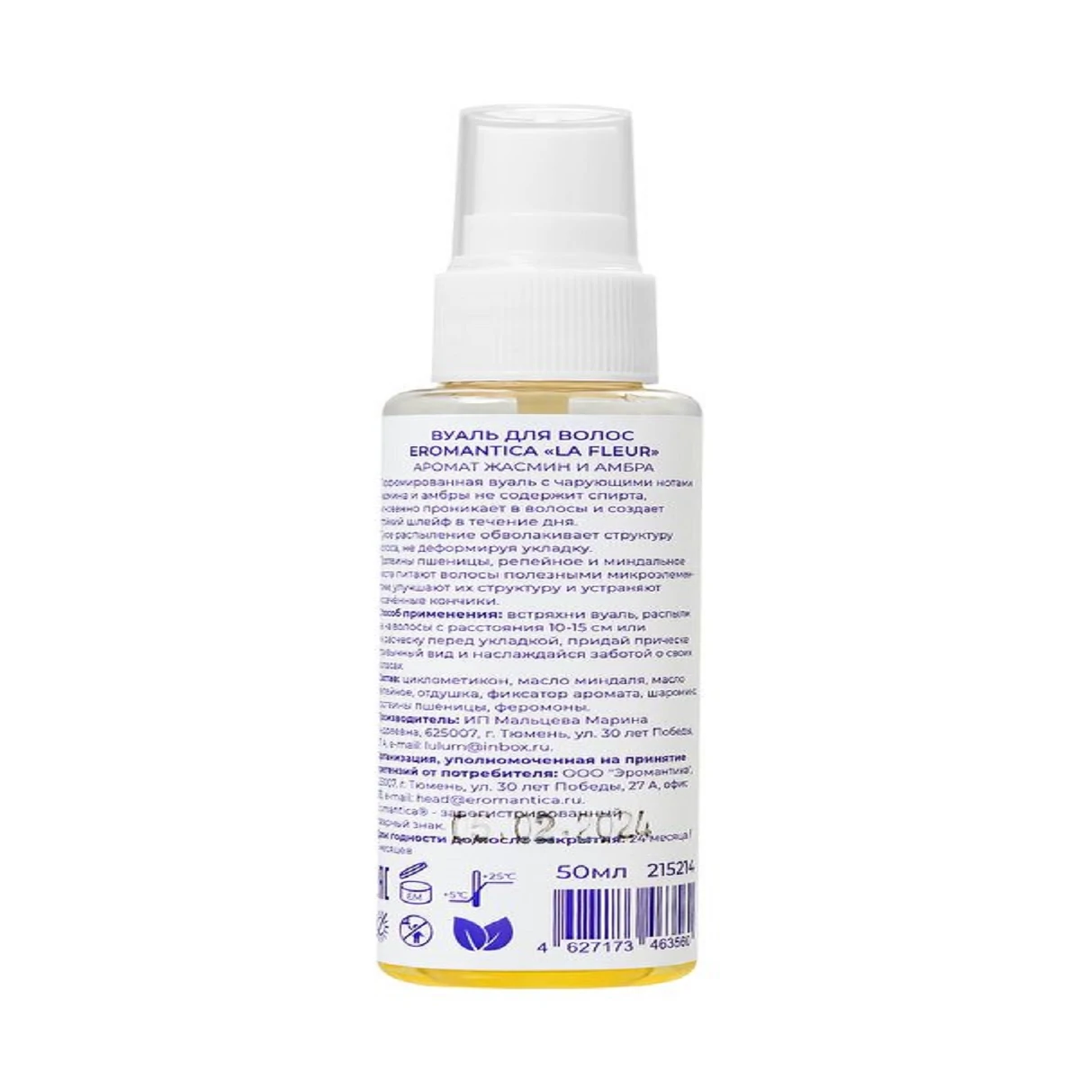 Парфюмированная вуаль не содержит спирта, а композиция с чарующими нотами жасмина и амбры мгновенно проникает в волосы и создает стойкий шлейф в течение дня. Сухое распыление обволакивает структуру волоса, не деформируя укладку. Протеины пшеницы, репейное и миндальное масла питают волосы полезными микроэлементами, улучшают их структуру, устраняют иссечённые кончики и обеспечивают длительный ухаживающий эффект. Способ применения: Встряхни вуаль, нажми на дозатор флакона и распыли средство на волосы или расческу перед укладкой, придай прическе привычный вид и наслаждайся заботой о своих волосах. Встряхивай перед каждым применением. Объем: 50 мл.