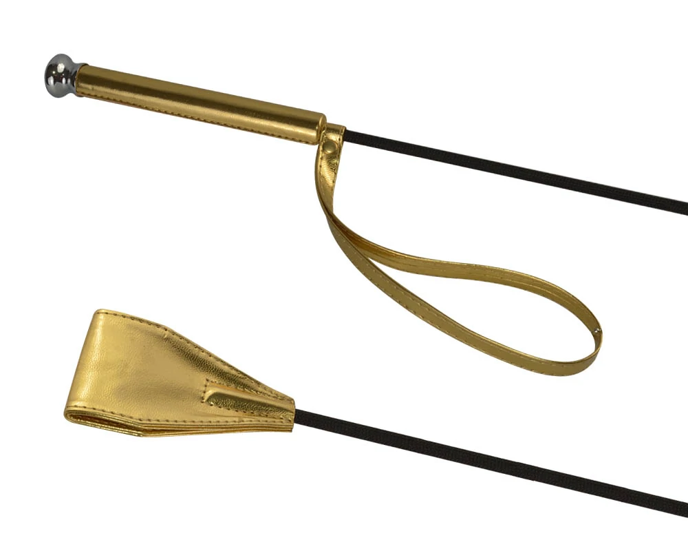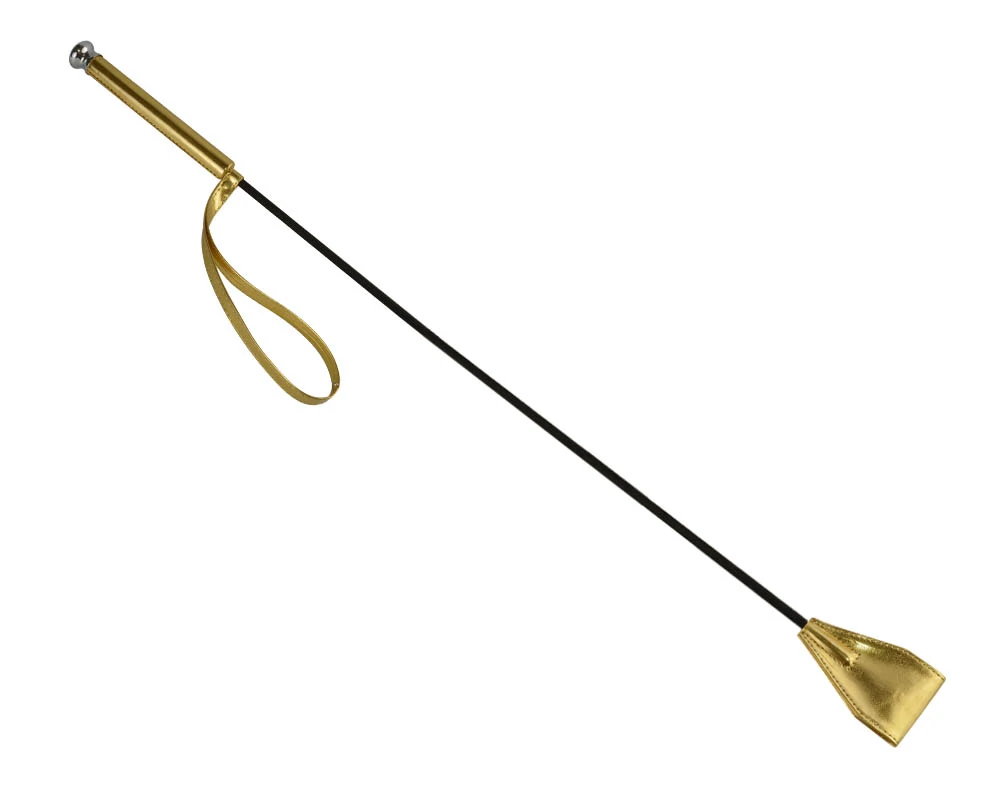 Стек – это не просто атрибут BDSM, который входит в число ударных предметов, он является символом власти, движением которого, можно управлять «нижним», даже не прикасаясь его. Поэтому, значение стека в ролевых играх не стоит недооценивать. Стек золотого цвета, своим сверкающим видом, заставит внимательно следить за малейшими движениями, чтобы беспрекословно выполнить любое Ваше желание. Девайс состоит из жесткой рукояти и гибкой полимерной основы. Прямоугольный шлепок, расположенный на конце стека, позволит оставлять следы на теле Вашего партнёра. Размер: общая длина стека достигает 62 см, длина шлепка 5 см, ширина 5 см. Цвет золотистый.