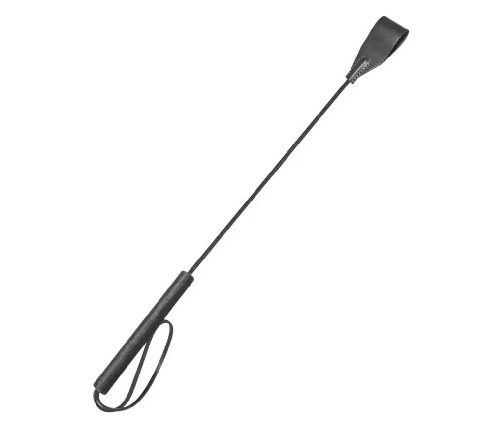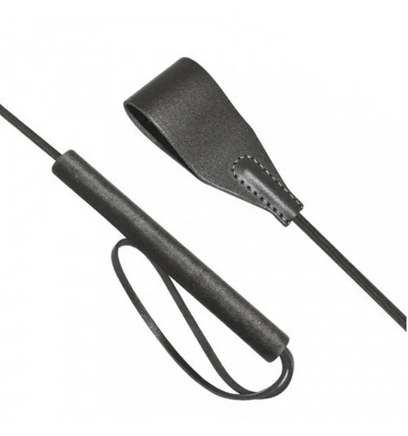 Стек из серии Готика представлен в виде роскошного, изящного изделия черного цвета. Петлеобразная хлопушка стека изготовлена из натуральной кожи высокого качества, располагается на конце гибкого, но прочного хлыста. Комфортное использование девайса обеспечивает бархатистая рукоять, покрытая велюровой тканью. Ремешок-петля, находящийся на рукояти, позволяет дополнительно фиксировать стек на запястье. Размер: длина общая 77 см, длина рукояти 17 см, длина хлопушки 13 см, ширина хлопушки 5 см. Цвет черный.