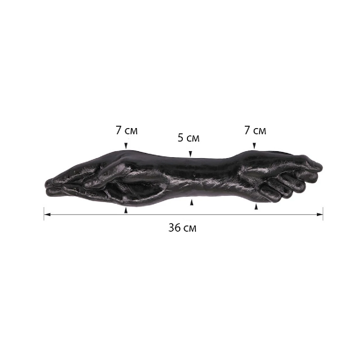 Двусторонний стимулятор необычной формы, выполнен в виде руки, пальцы которой сложены вместе. Эта игрушка имеет гладкую поверхность и четкие контуры. Стимулятор-рука используется непосредственно для фистинга. Игрушка позволит разнообразить вашу сексуальную жизнь и окунуться в новые яркие ощущения. Он сделан из высококачественного ПВХ, является полностью безопасным для тела, упругий на ощупь, но при этом гибкий, выполнен в черном цвете. Попробуйте и Вы будете удивлены, насколько реалистичена эта рука! Для более глубоких проникновений и мягких скольжений, рекомендуется использовать игрушку в сочетании со смазками и лубрикантами. После использования, изделие достаточно вымыть в теплой воде и вытереть насухо. Размер: длина 36 см, диаметр 7 см. Для более комфортного использования рекомендуем приобрести смазку на водной основе и очищающий спрей Clear Toy 100 мл для обработки изделия.