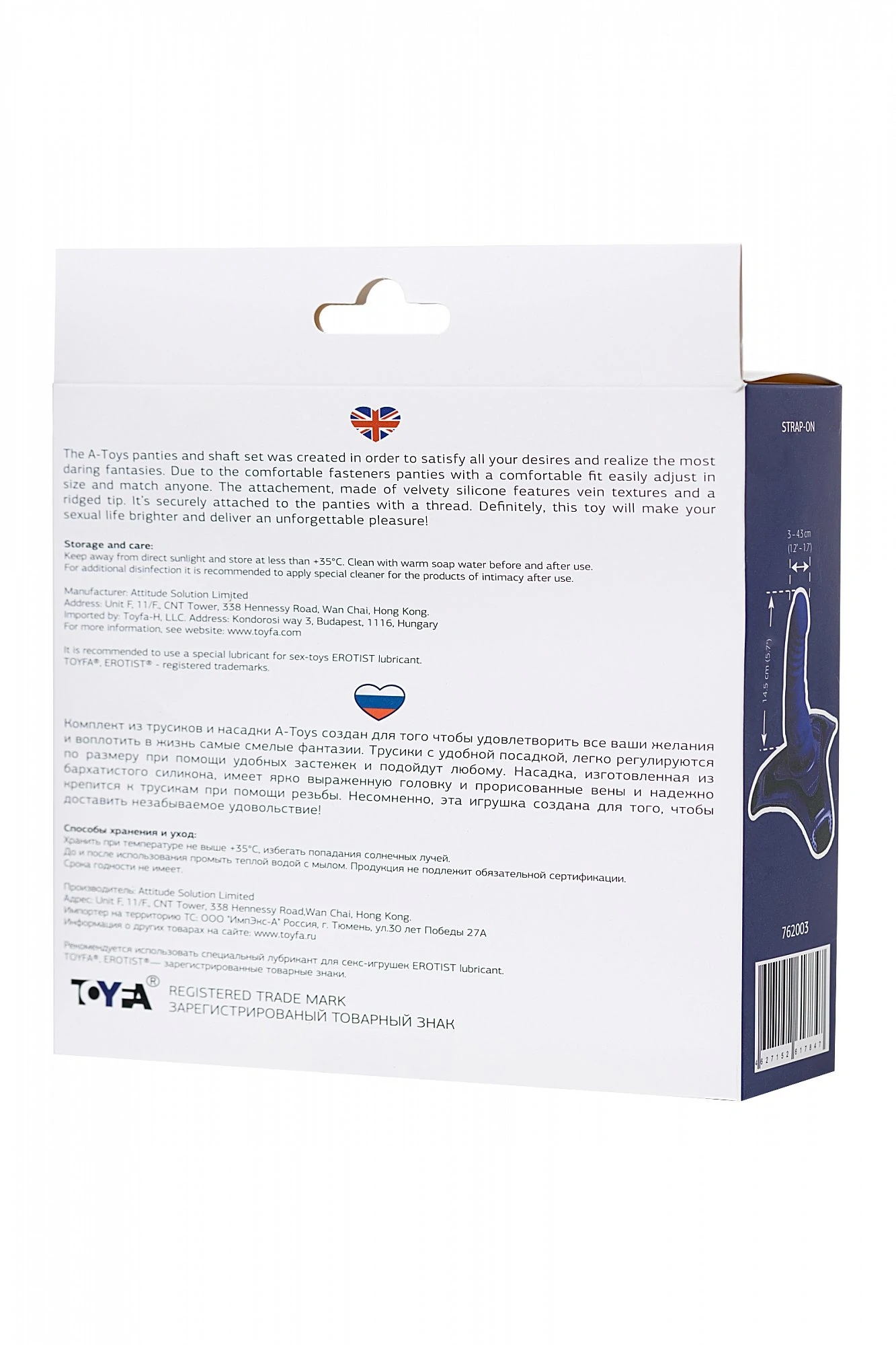 Комплект из трусиков и насадки A-Toys Siru создан для того чтобы удовлетворить все ваши желания и воплотить в жизнь самые смелые фантазии. Трусики с удобной посадкой, легко регулируются по размеру при помощи удобных застежек и подойдут любому. Насадка, изготовленная из бархатистого силикона, имеет ярко выраженную головку и прорисованные вены и надежно крепится к трусикам при помощи резьбы. Несомненно, эта игрушка создана для того, чтобы доставить незабываемое удовольствие! Размер: длина 14,5 см, диаметр 2 - 4,3 см. Для более комфортного использования рекомендуем приобрести смазку на водной основе и очищающий спрей Clear Toy 100 мл для обработки изделия.
