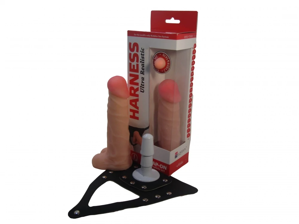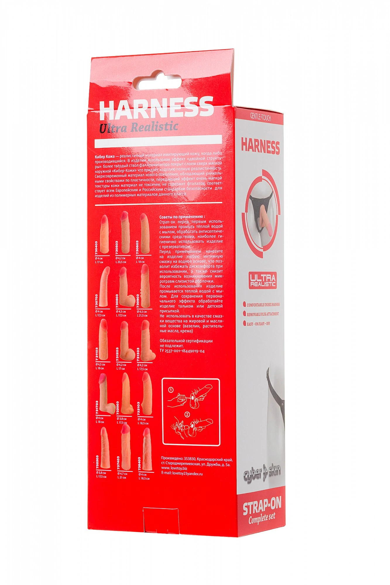 Реалистичная насадка-фаллоимитатор с поясом Harness с мошонкой. Ствол насадки покрыт рельефными венками для дополнительного массажа стенок влагалища. Страпон удобно крепится при помощи пояса, который можно отрегулировать по размеру. Насадку можно использовать в качестве фаллоимитатора. Насадка-фаллоимитатор с мошонкой сделана из реалистичного на ощупь материала, максимально напоминающего кожу человека. Размер: общая длина 17,5 см, рабочая длина 15 см, диаметр 4,2 см. Для более комфортного использования рекомендуем приобрести смазку на водной основе и очищающий спрей Clear Toy 100 мл для обработки изделия.