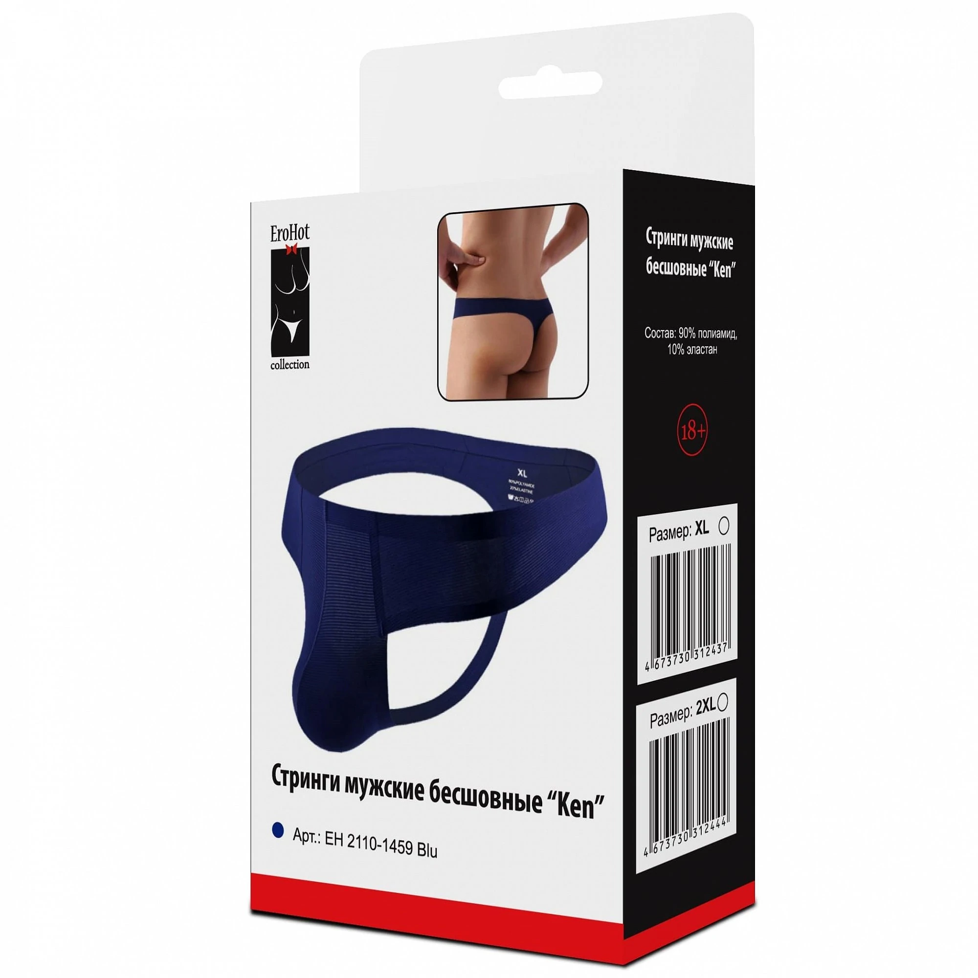 KEN- мужские стринги синего цвета из нежного шелковистого трикотажа. Плоские швы, эластичный материал, облегающий фигуру крой – обеспечивают комфортное ношение и сексуальный вид. Цвет синий. Размер L (48).