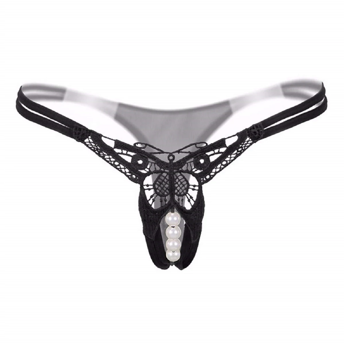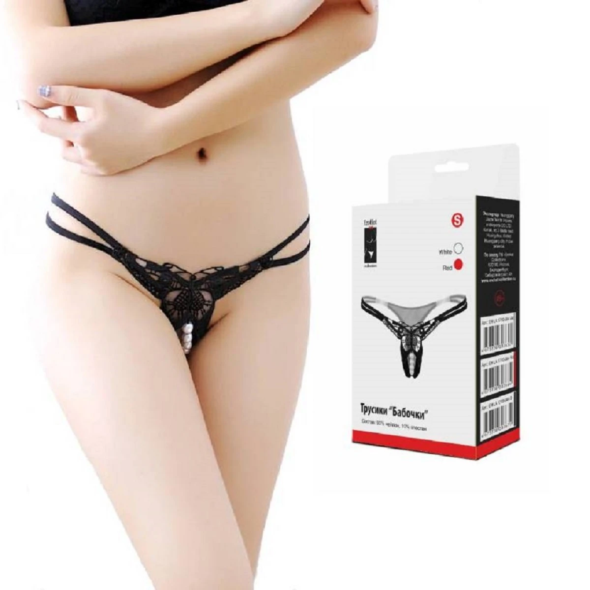 Прелестные трусики с доступом и бусами на самом пикантном месте! Передняя часть белья украшена гипюровой бабочкой, что добавляет легкости и невинности. Цвет черный. Размер: S(42-44).