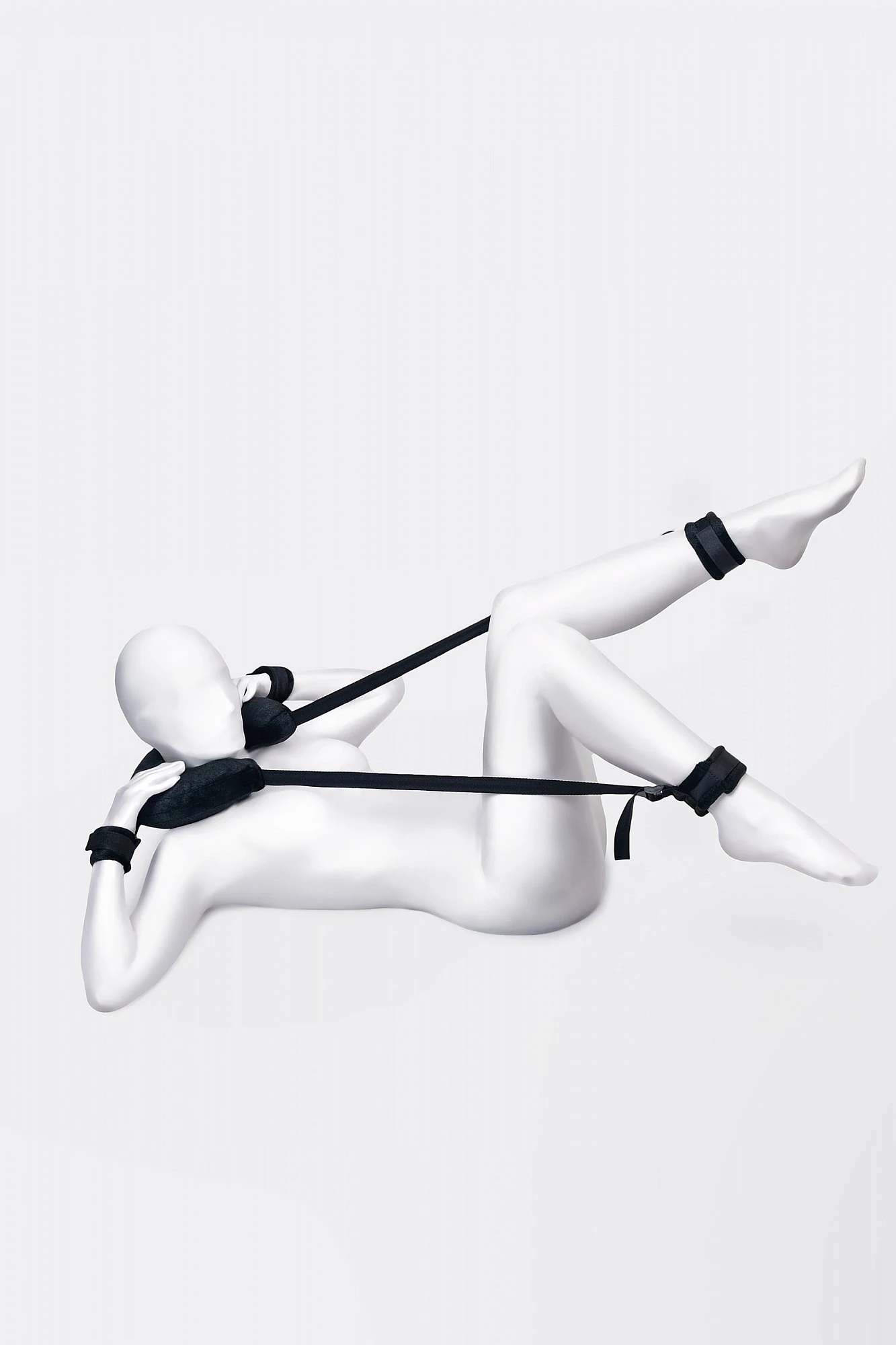 Чтобы экспериментировать и получать новые ощущения, необязательно быть опытным БДСМ-практиком. Главное, что должно волновать вас – это взаимное удовольствие. Для этого вам пригодится стропа для фиксации. Больше не нужно тратить силы на удерживание ног в нужной позиции. Мягкая подушка комфортно обхватывает шею, расслабляя ее и снимая нагрузку с позвоночника. Ремни регулируются и настраиваются по вашему желанию, чтобы удерживать бедра или лодыжки в нужном положении. Фиксирующая стропа оснащена также наручниками, позволяющим закрепить запястья у шеи, и лишить подчиняющегося партнера возможности двигать руками. Стропа для фиксации с подушкой для шеи поможет сосредоточиться на собственных ощущениях и подчиняться с комфортом. Материал: велюр, нейлон, полиэстер. Общая длина: 127 см. Внешняя окружность подушки: 85 см. Внутренняя окружность подушки: 37 см. Длина наручников: 21 см. Длина поножей: 26,5 см. Ширина подушки: 7,5 см. Ширина наручников: 5 см. Ширина поножей: 5 см.