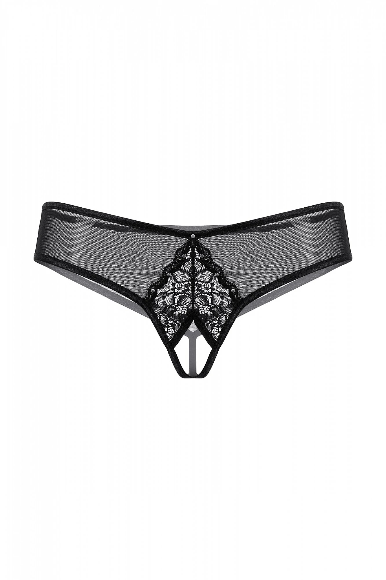 Трусики с открытым доступом. Спереди декорированы кружевной вставкой и маленькими стразами.