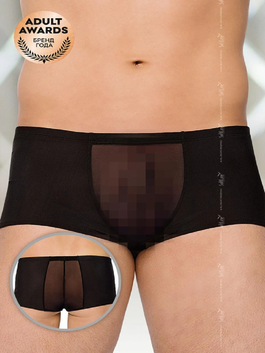 Трусы-шорты из плотной ткани. Имеется две большие вставки из прозрачной ткани: спереди и сзади (по центру). Таким образом, самые пикантные места остаются практически не прикрытыми от любопытных глаз. Размер: M/L.