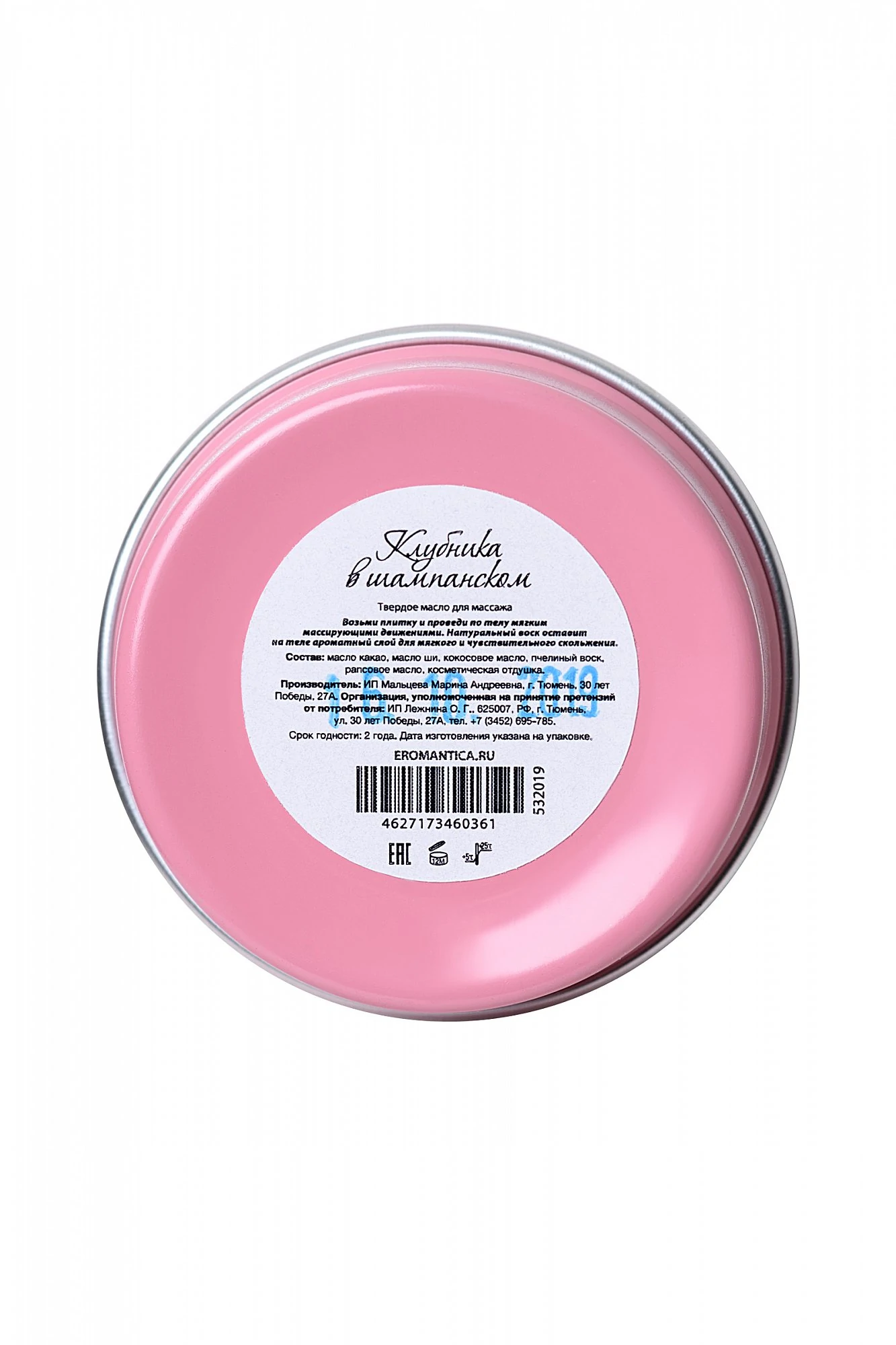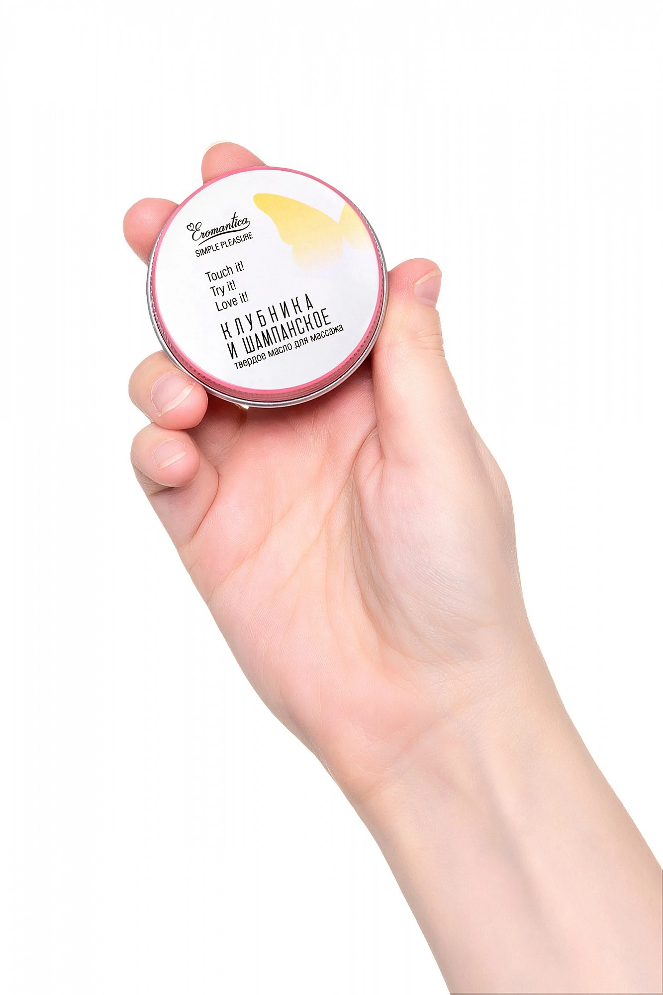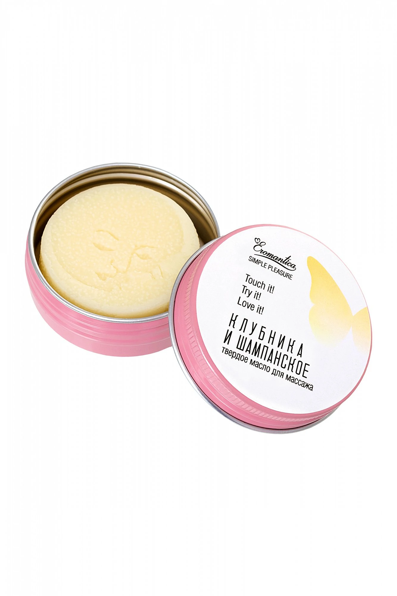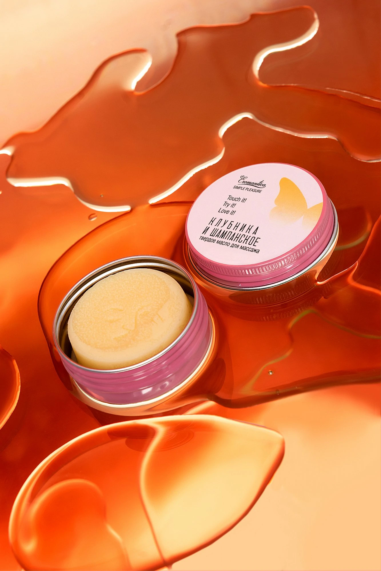 Коллекция косметики для массажа Eromantica Simple Pleasure — это натуральные массажные масла в удобном формате. С ними ты можешь создавать романтическую атмосферу и наслаждаться роскошным уходом в любом месте и в любое время. Твердое масло для массажа Eromantica Клубника и шампанское — релакс и уход в удобном формате. Как использовать: проведи плиткой по телу мягкими массирующими движениями.