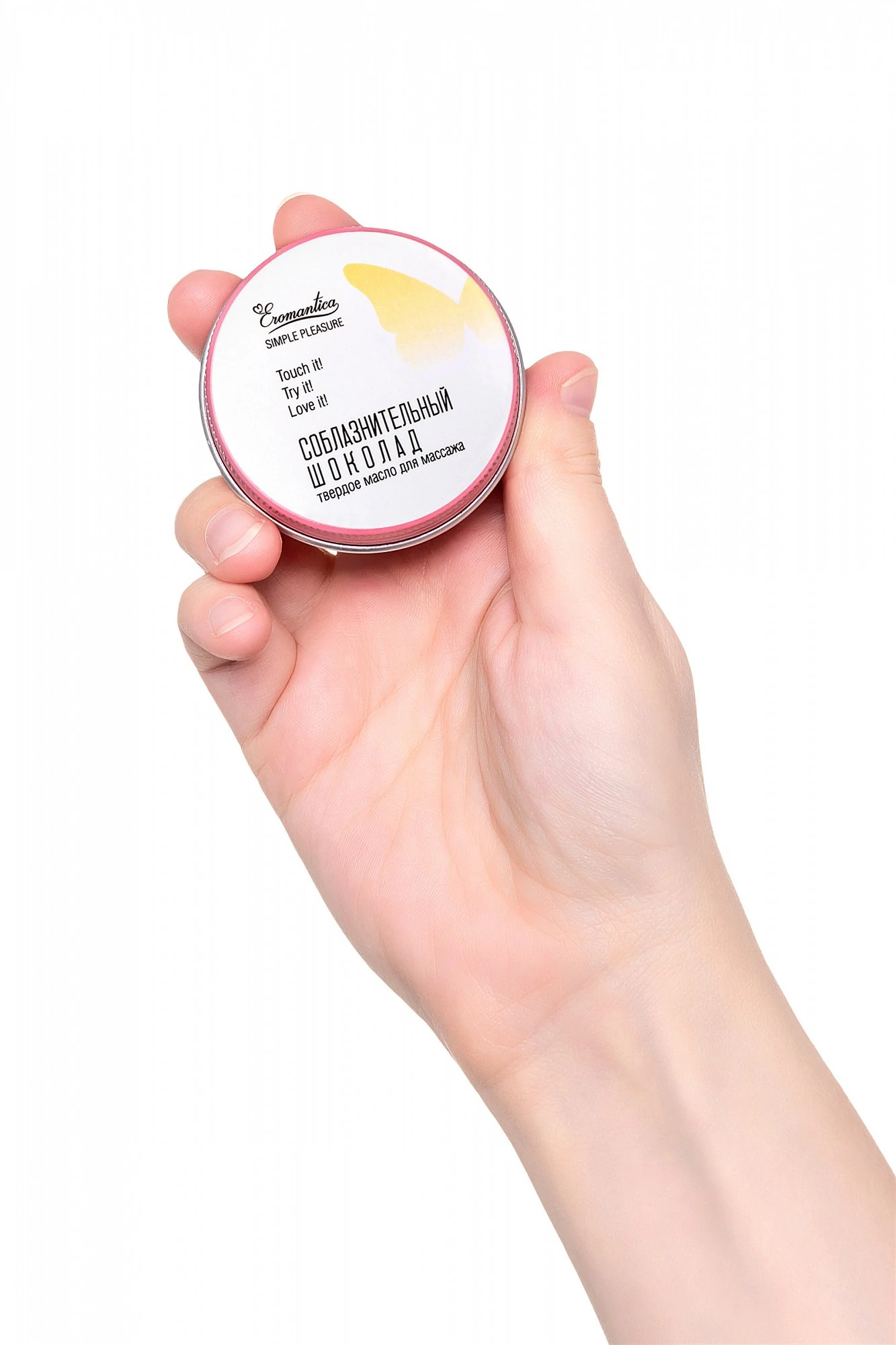 Коллекция косметики для массажа Eromantica Simple Pleasure — это натуральные массажные масла в удобном формате. С ними ты можешь создавать романтическую атмосферу и наслаждаться роскошным уходом в любом месте и в любое время. Твердое масло для массажа Eromantica Соблазнительный шоколад — релакс и уход в удобном формате. Как использовать: проведи плиткой по телу мягкими массирующими движениями.