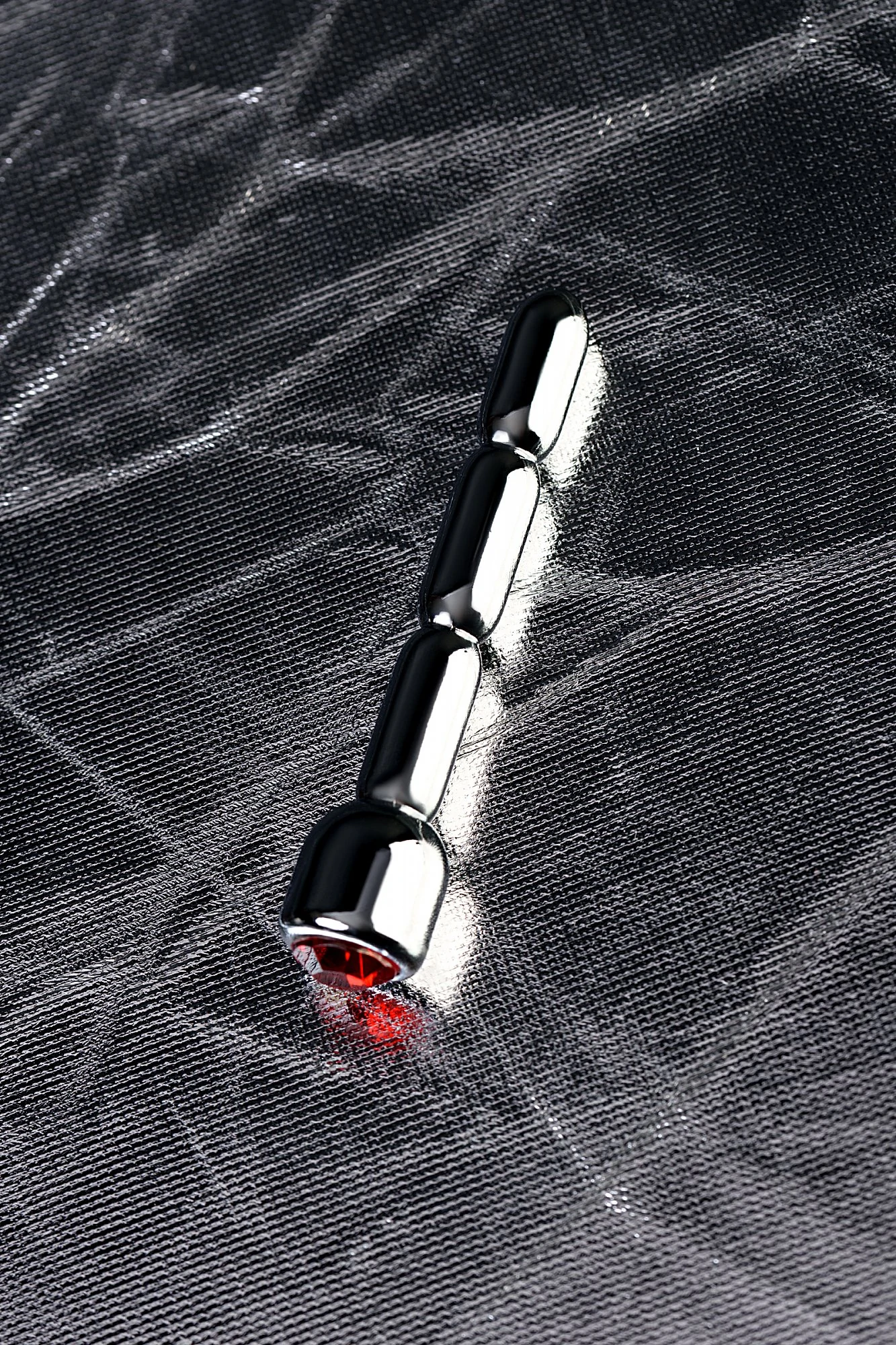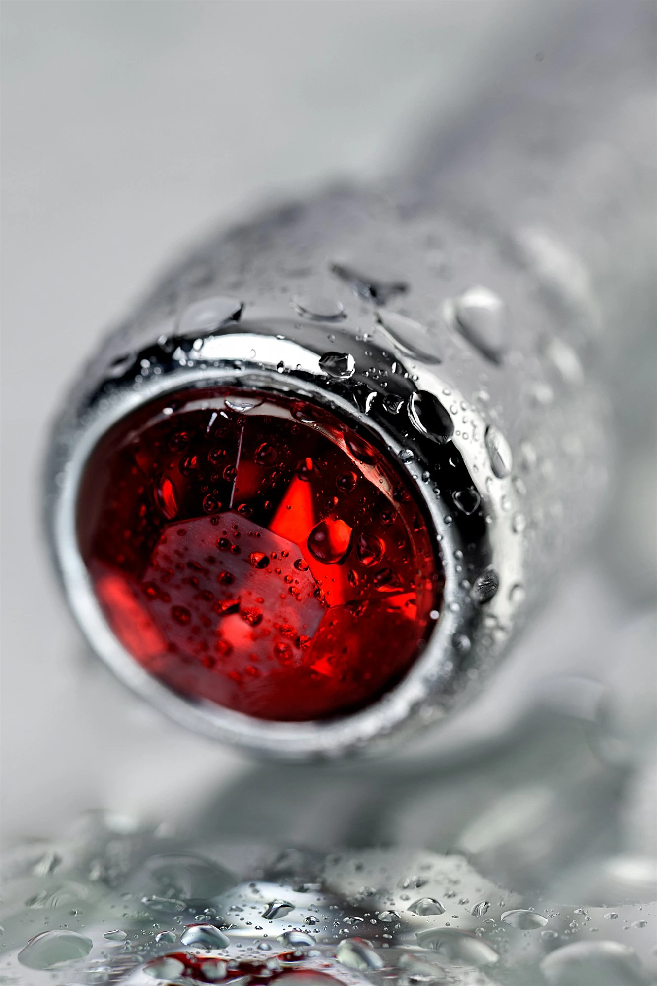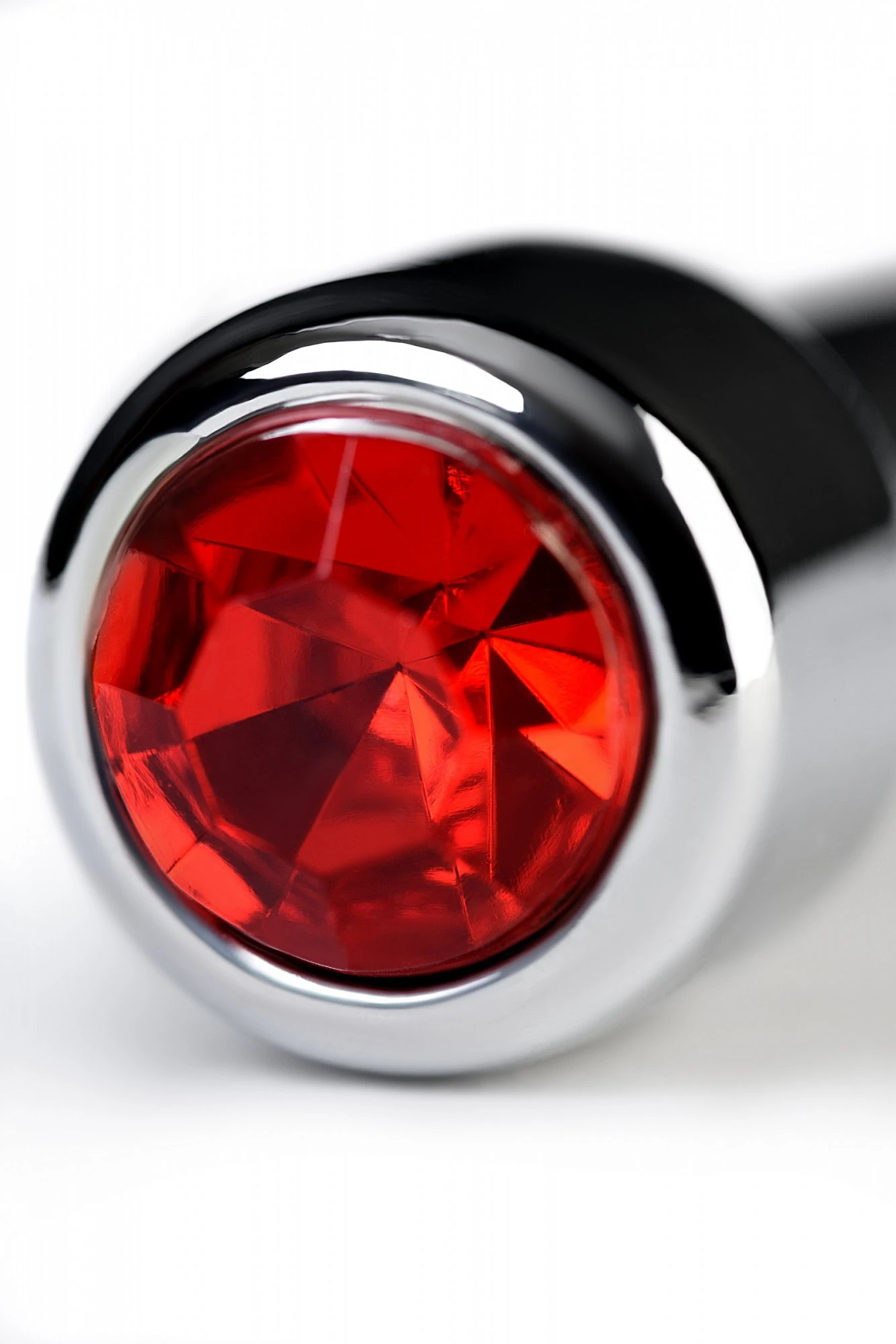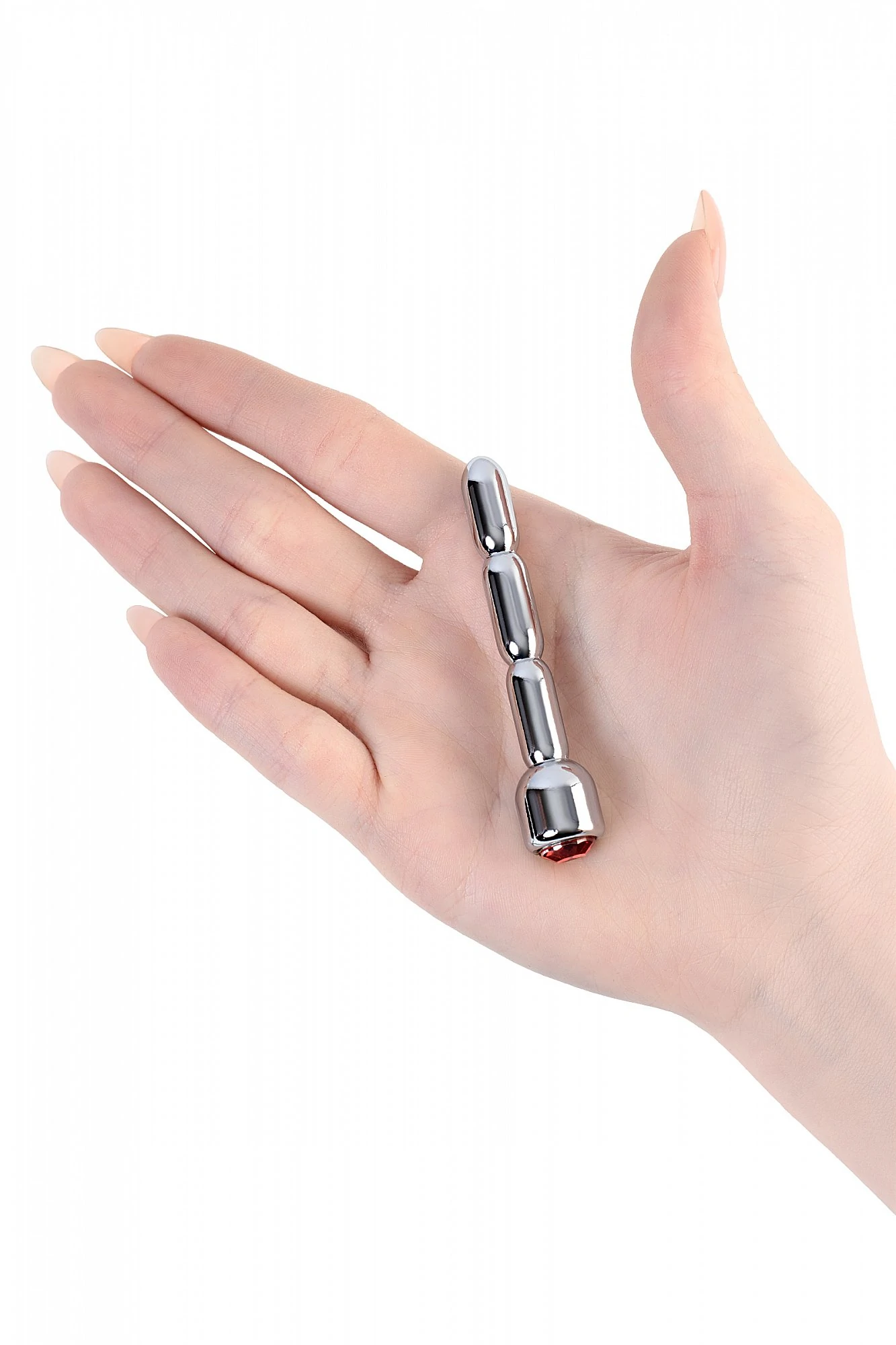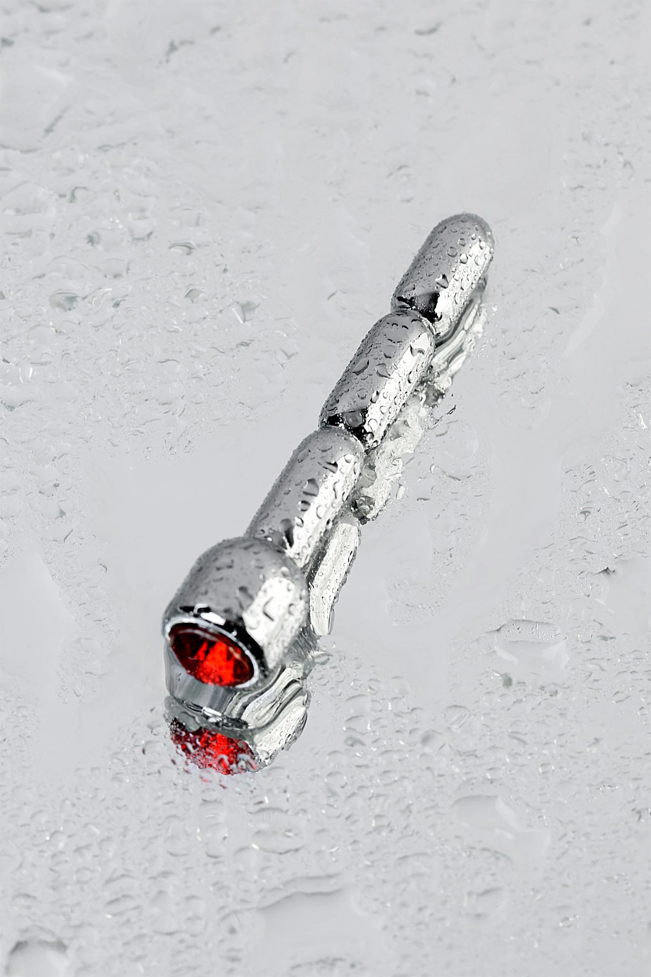 Уретральный плаг со стразом цвета рубин среднего размера. Подходит как для стимуляции уретры, так и для украшения пениса.
