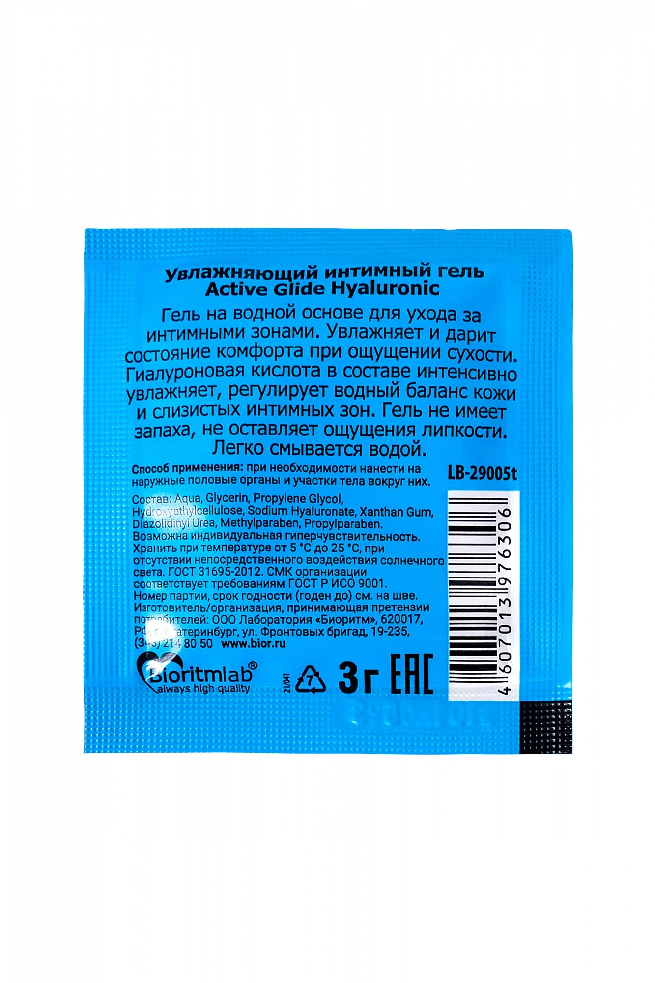 Нежный гель-любрикант на водной основе Active Glide с гиалуроновой кислотой интенсивно и длительно увлажняет и смягчает интимные зоны, устраняет сухость влагалища, восполняет недостаток женской смазки, дарит приятное продолжительное скольжение во время близости, снимает раздражения, препятствует появлению микротравм. Входящая в состав любриканта гиалуроновая кислота нормализует водный баланс клеток, способствует регенерации кожи и слизистых, обеспечивает эластичность тканей половых органов. снижает чувствительность кожи, усиливает её защитные функции. Гель-любрикант Active Glide с гиалуроновой кислотой обеспечивает бережный уход за интимными зонами женщин и мужчин. Не имеет цвета и запаха, легко смывается водой.