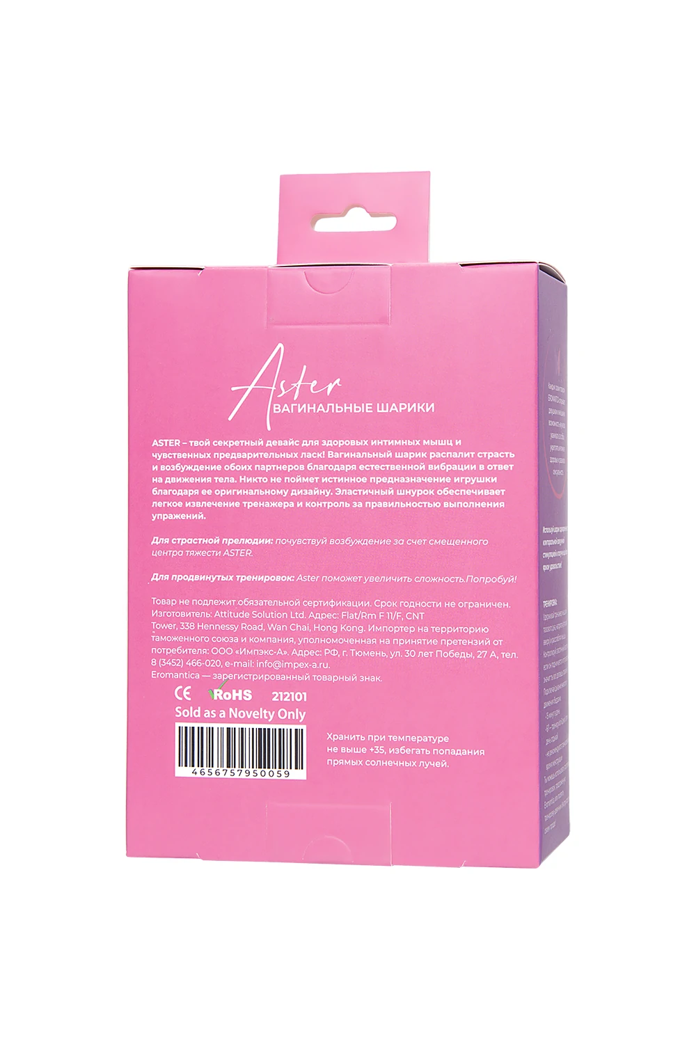 Aster – твой секретный девайс для здоровых интимных мышц и чувственных предварительных ласк! Вагинальный шарик распалит страсть и возбуждение обоих партнеров благодаря естественной вибрации в ответ на движения тела. Никто не поймет истинное предназначение игрушки благодаря ее элегантному оригинальному дизайну. Эластичный шнурок обеспечивает легкое извлечение тренажера и контроль за правильностью выполнения упражений. Для более комфортного использования рекомендуем приобрести специальный гель для вумбилдинга (фитнеса интимных мышц) Intim Fitness для женщин 50 гр и очищающий спрей Clear Toy 100 мл.