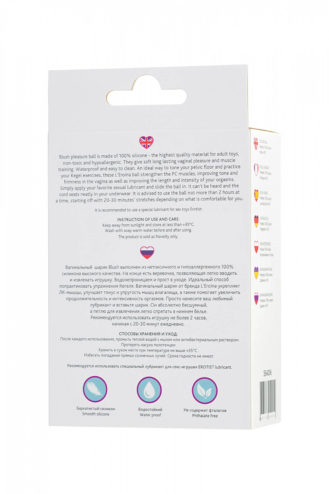 Вагинальный шарик Blush выполнен из нетоксичного и гипоаллергенного 100% силикона высокого качества. На конце есть веревочка, позволяющая легко вводить и извлекать игрушку. Водонепроницаем и прост в уходе. Идеальный способ попрактиковать упражнения Кегеля. Вагинальный шарик от бренда L’Eroina укрепляет ЛК-мышцы, улучшает тонус и упругость мышц влагалища, а также помогает увеличить продолжительность и интенсивность оргазмов. Просто нанесите ваш любимый лубрикант и вставьте шарик. Он абсолютно бесшумный, а петлю для извлечения легко спрятать в нижнем белье. Размер: общаядлина: 10,5 см, диаметр: 3,1 см, вес шарика 65 гр. Для более комфортного использования рекомендуем приобрести специальный гель для вумбилдинга (фитнеса интимных мышц) Intim Fitness для женщин 50 гр и очищающий спрей Clear Toy 100 мл.