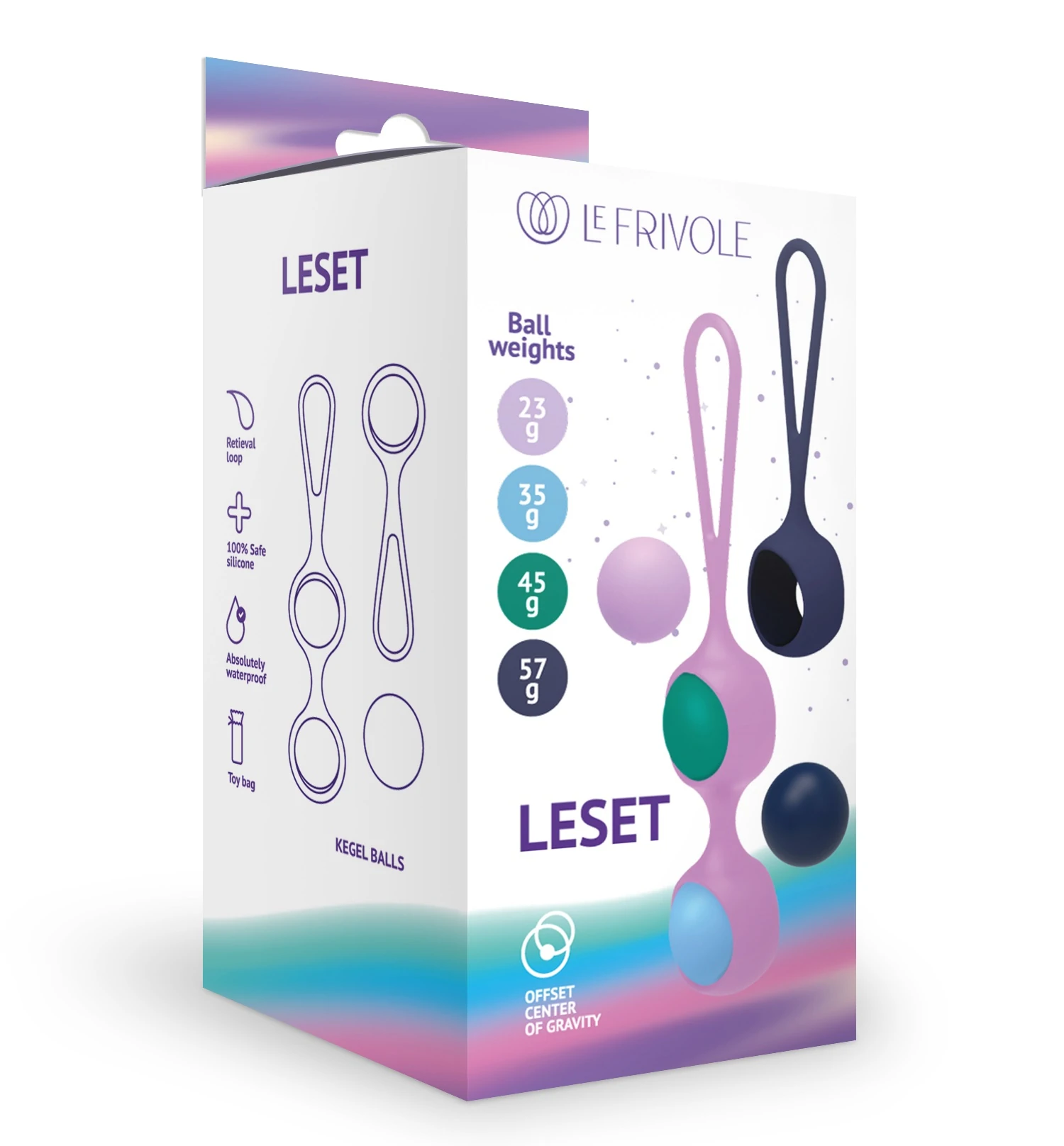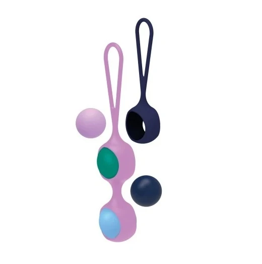 Вагинальный тренажер Leset – ультимативное решение для женщин, которые хотят начать тренировать интимные мышцы. Благодаря системе взаимозаменяемых шариков и двух основ вы можете настраивать веса, постепенно прогрессируя в своих упражнениях. Все 4 шарика имеют смещенный центр тяжести, а значит тренировки будут не только продуктивными, но и приятными! Так же можно использовать шарики без креплений. Благодаря петлям на основах игрушки будет удобно доставать после использования. Перед упражнениями, для комфортного введения необходимо смазать их лубрикантом. 2 основы с петлями и 4 шарика со смещенным центром тяжести (23г.фиолетовый, 35г.голубой, 45г.зеленый, 57г.синий) Размер: длина основ 16 и 11 см, диаметр шариков 3,25 см. Для более комфортного использования рекомендуем приобрести смазку на водной основе и очищающий спрей Clear Toy 100 мл для обработки изделия.