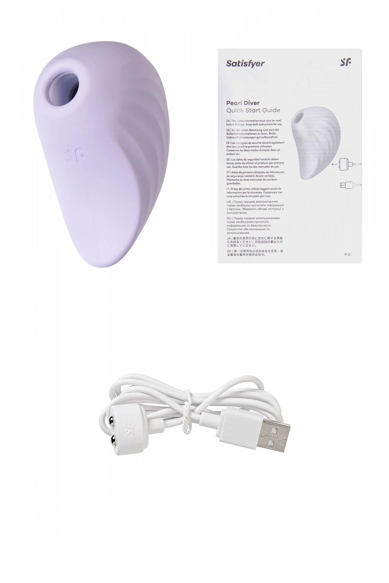 Стимулятор Pearl Diver от Satisfyer в форме ракушки не зря носит свое имя. Этот ныряльщик за жемчугом способен отыскать и порадовать вашу жемчужину невероятными посасывающими ласками и возбуждающими волнами вибрации. Сладостные минуты удовольствия обеспечены вам, если у вас в руках этот клиторальный стимулятор. С одной стороны имеется раструб, который балует вашу жемчужинку воздушной пульсацией, превосходящей любые оральные ласки. Pearl Diver обладает двумя автономными моторами. Комбинируйте воздушную пульсацию и проникающие волны вибрации, чтобы достигать неземного блаженства каждый раз. В вашем распоряжении 11 уровней интенсивности вакуум-волновой стимуляции и 12 программ вибрации – от нежной до интенсивной. Интуитивно понятное управление с помощью трех выпуклых кнопок на корпусе. Стимулятор-ракушка удобно располагается в ладони. Благодаря нежному материалу, из которого выполнен Pearl Diver, вам будет комфортно и приятно держать его в руках и получать удовольствие от его вибрации и пульсации.