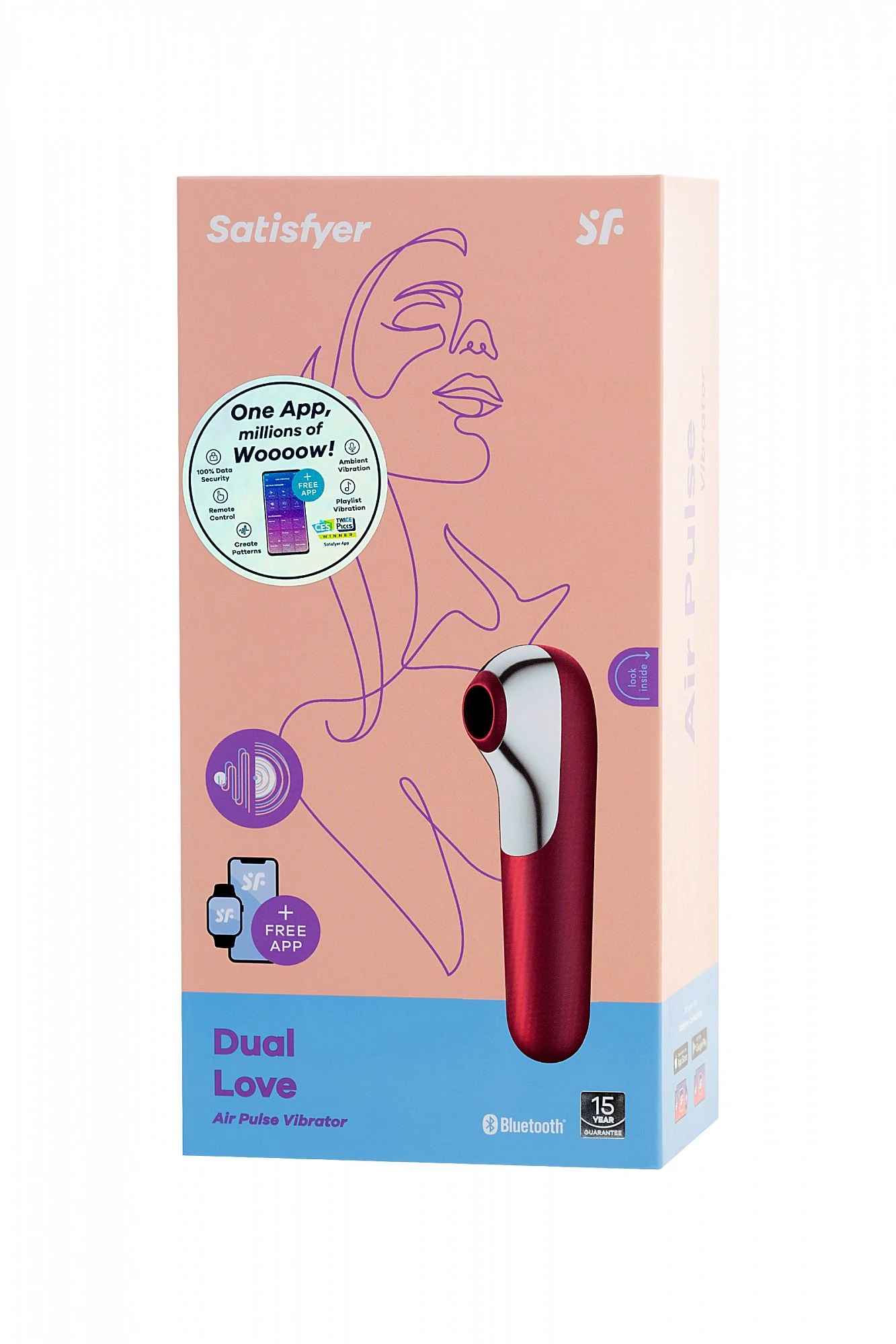 Стимулятор клитора Dual Love стимулирует нервные окончания при помощи волн высокого давления, сочетая их с нежной, чувственной вибрацией. Вы можете выбирать любую из 11 программ стимуляции воздушными волнами и 10 различных настроек вибрации. На боковой поверхности головки находится воронка, фокусирующая воздействие на клиторе. Вы можете перевернуть аксессуар и использовать рукоятку в роли обычного вагинального вибратора. Игрушкой можно управлять при помощи клавиш на корпусе, а также посредством смартфона, где установлено специальное приложение Satisfyer Connect. С его помощью можно значительно расширить возможности девайса, создавая свои собственные, неповторимые режимы стимуляции, позволяет применять аксессуар в ванне и душе. Материал манжеты – медицинский гипоаллергенный силикон. Длина 16 см., ширина 5,5 см. Цвет красный. Для более комфортного использования рекомендуем приобрести смазку на водной основе и очищающий спрей Clear Toy 100 мл для обработки изделия.