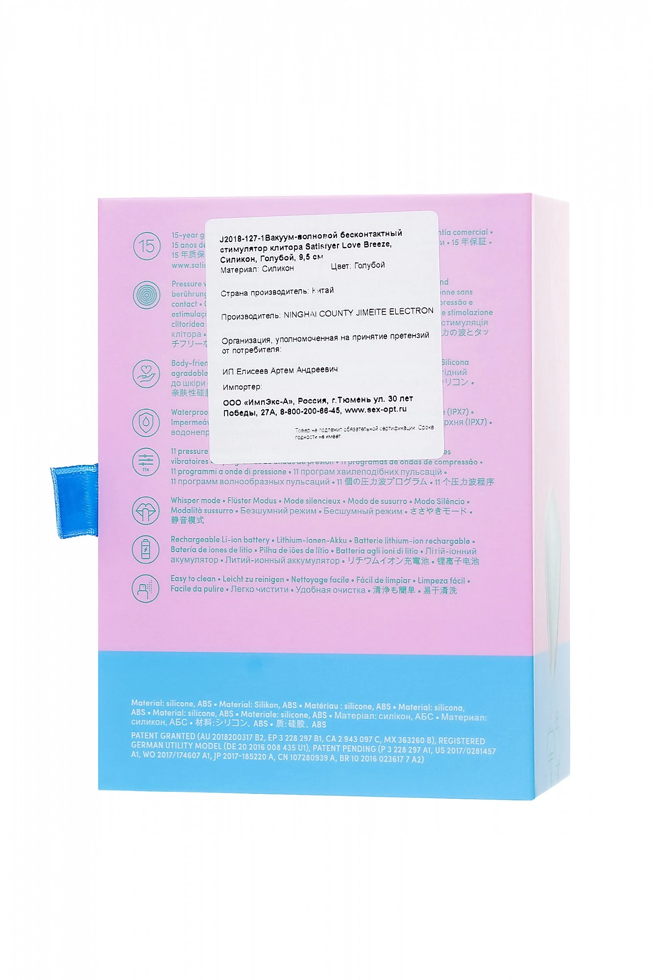 Love Breeze- новый вакуумно-волновой стимулятор клитора, он оснащен 11 режимами стимулирующих волн воздушного давления Air Pulse. Стимулятор уникальной и эргономичной формы идеально лежит в ладони, не скользит. Кончик стимулятора плотно прилегает к клитору и обеспечивает не только вакуумно-волновое воздействие, но и вибрацию. А благодаря компактному дизайну и специальной крышечке, его удобно хранить. Девайс имеет степень водонепроницаемости IPX7, поэтому его легко использовать в душе или ванне. Изделие изготовлено из мягкого, эластичного силикона без запаха, без аллергенов и вредных для здоровья веществ. Такой материал не впитывает запахи, не меняет цвет и не требует особого ухода. Размер: длина 9,5 см, диаметр 5 см. Цвет: голубой. Для более комфортного использования рекомендуем приобрести смазку на водной основе и очищающий спрей Clear Toy 100 мл для обработки изделия.