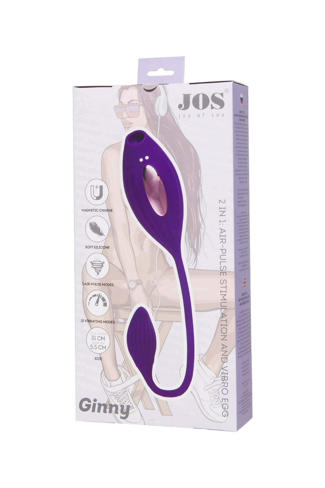 Настоящая находка для искательниц острых ощущений - Ginny 2 в 1: вакуум-волновой стимулятор и виброяйцо. Ginny исполнит самые заветные желания девушек. Вакуум-волновой стимулятор клитора в 5 различных режимах не заставит ожидать яркую кульминацию. Виброяйцо работает в 10 режимах и выполнено в обтекаемой овальной форме для комфортного введения. Вы можете использовать возможности Ginny как одновременно, так и по отдельности. Для более комфортного использования рекомендуем приобрести смазку на водной основе и очищающий спрей Clear Toy 100 мл для обработки изделия.