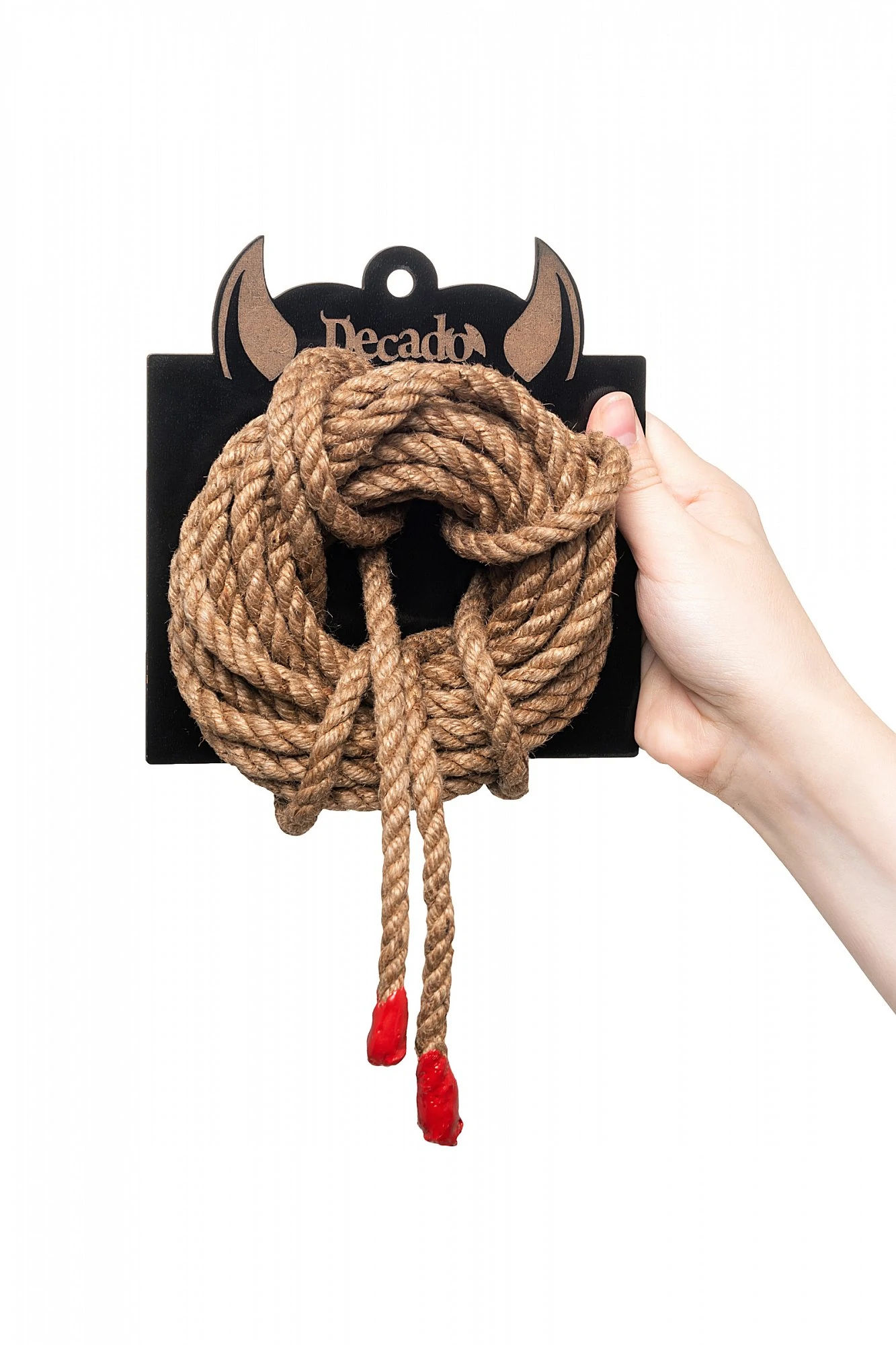 Джутовая веревка "Shibari" Pecado гарантированно вызовет мурашки по телу обоих партнеров. Этот классический предмет в БДСМ играх изготовлен по всем канонам искусства Шибари. Высококачественный материал натурального цвета практичен и не раздражает кожу. Веревка нежная, тактильно приятная, но в меру жесткая. Обработана, выварена вручную с применением гипоаллергенных материалов и готова к применению. Обладает теплым древесным ароматом, благодаря ароматизации афродизиаком. Концы веревки обработаны с помощью сургуча. Оптимальные размеры - диаметр 8 мм и длина 5 м в мотке хорошо подходит тем, кто только начинает знакомится с японской техникой связывания. А также опытным мастерам, истинным любителям неординарных ощущений.