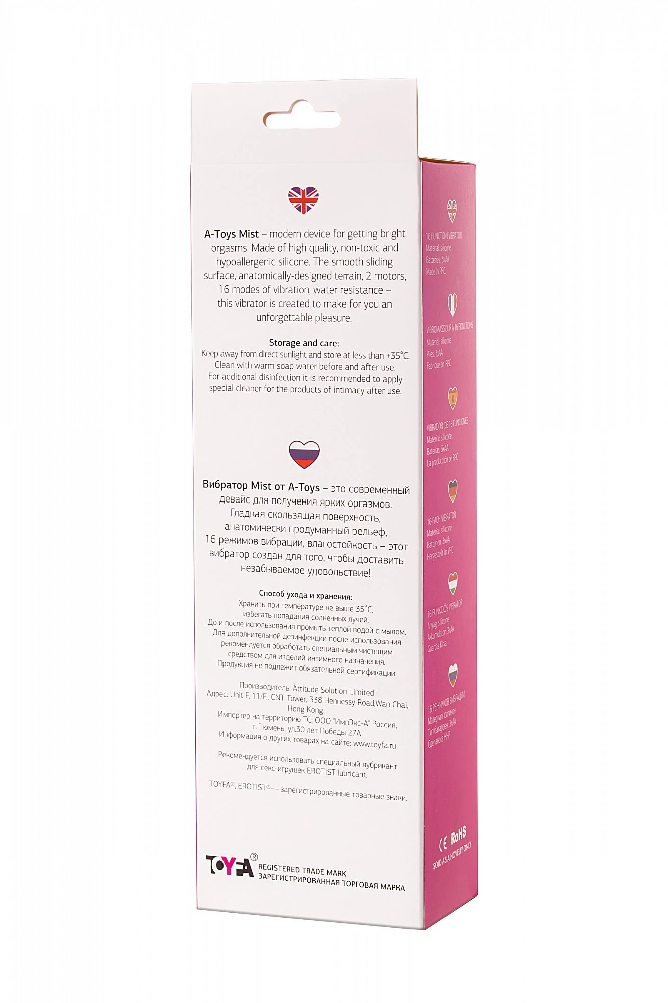 Вибратор Mist от A-Toys – это современный девайс для получения ярких оргазмов. Гладкая скользящая поверхность, анатомически продуманный рельеф, 16 режимов вибрации, влагостойкость – этот вибратор создан для того, чтобы доставить незабываемое удовольствие!
