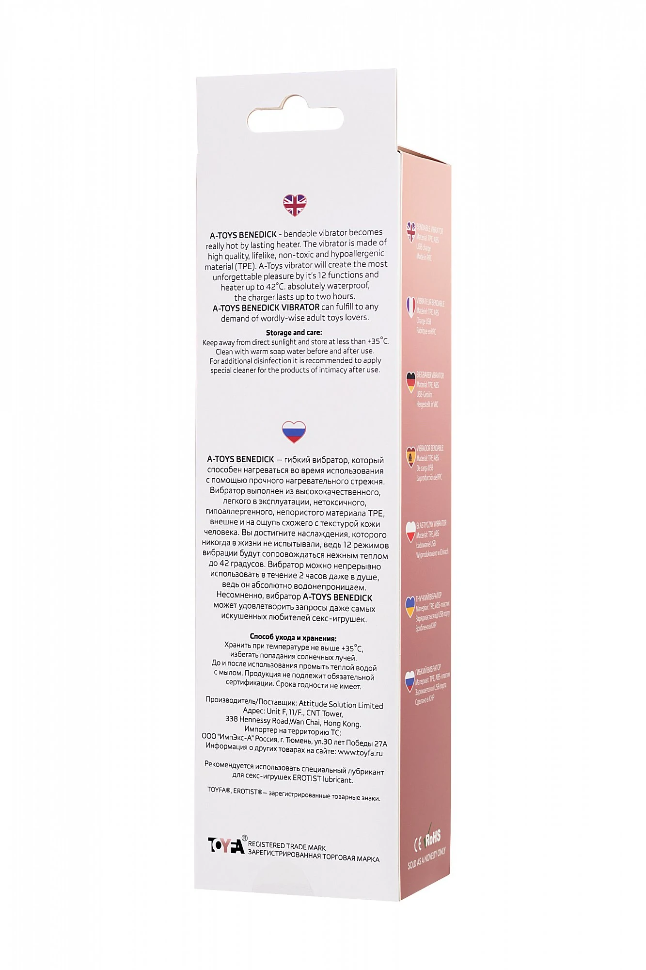 A-Toys Hot — гибкий вибратор, который способен нагреваться во время использования с помощью прочного нагревательного стрежня. Вибратор выполнен из высококачественного, легкого в эксплуатации, нетоксичного, гипоаллергенного, непористого материала TPE, внешне и на ощупь схожего с текстурой кожи человека. Вы достигните наслаждения, которого никогда в жизни не испытывали, ведь 12 режимов вибрации будут сопровождаться нежным теплом до 42 градусов. Вибратор можно непрерывно использовать в течение 2 часов даже в ванной в душе, ведь он абсолютно водонепроницаем. Несомненно, вибратор A-Toys Hot может удовлетворить запросы даже самых искушенных любителей секс-игрушек. Для более комфортного использования рекомендуем смазку на водной основе и очищающий спрей Clear Toy 100 мл. Размер: длина 19 см, диаметр 4 см. Цвет: телесный.