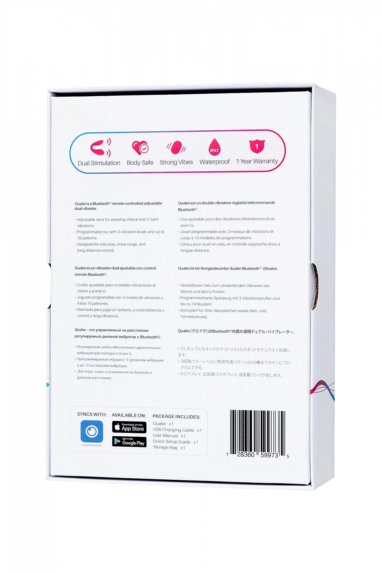 Dolce (ранее Quake) от LOVENSE - это сверхмощная игрушка, которая обеспечивает двойную стимуляцию клитора и зоны G одновременно - регулируемая шейка позволяет вам настроить идеальную форму и обеспечить смешанные интенсивные оргазмы. х 2 Двойной мотор. Двойная мощность. Двойной оргазм - стимуляция зоны G и клитора одновременно Гибкая шейка Регулируемая шейка позволяет подстроить игрушку под любую физиологию, обеспечивая лучший угол соприкосновения с клитором и зоной G. Наслаждайтесь интенсивными клиторальными и вагинальными оргазмами в одно и то же время, исследуя себя, даря себе глубокие ощущения по всему телу. Программируемая функция. Настраивайте уровни мощности вибрации по своему вкусу и сохраняйте их для дальнейшего использования. Также запрограммируйте до 10 любимых паттернов! Стабильное подключение. Антенна новейшего поколения и чип Bluetooth для любителей игр на большом расстоянии.