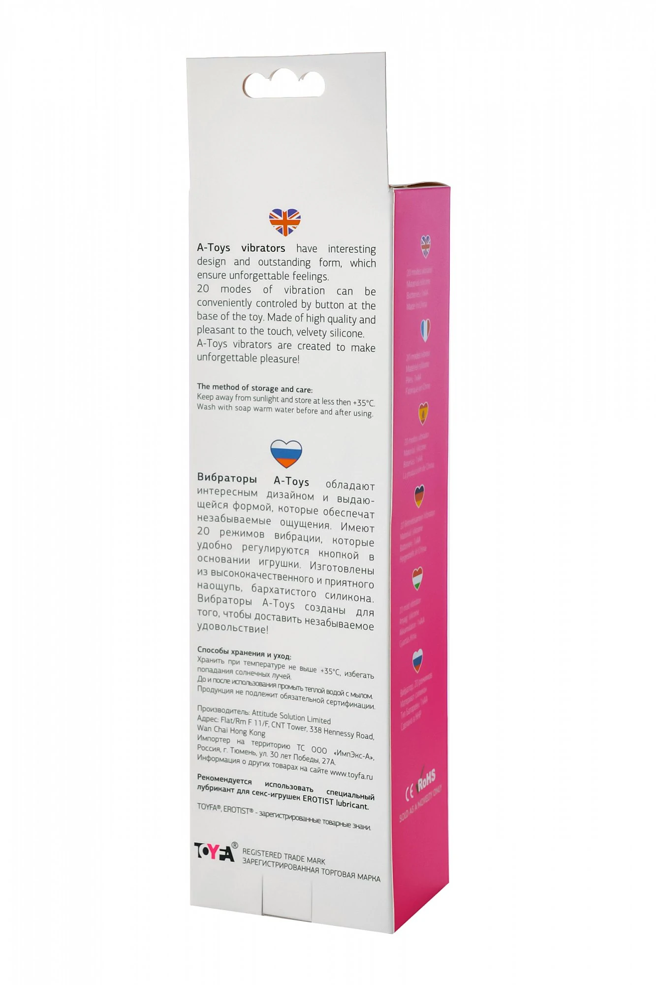 Вибраторы A-Toys - обладают интересным дизайном и выдающейся формой, которые обеспечат незабываемые ощущения. Имеют 20 режимов вибрации, которые удобно регулируются кнопкой в основании игрушки. Изготовлены из высококачественного и приятного на ощупь, бархатистого силикона. Вибраторы A-Toys созданы для того, чтобы доставить незабываемое удовольствие! Размер: общая длина 16 см, рабочая длина 13 см, диаметр 3 см. Для более комфортного использования рекомендуем приобрести смазку на водной основе и очищающий спрей Clear Toy 100 мл.