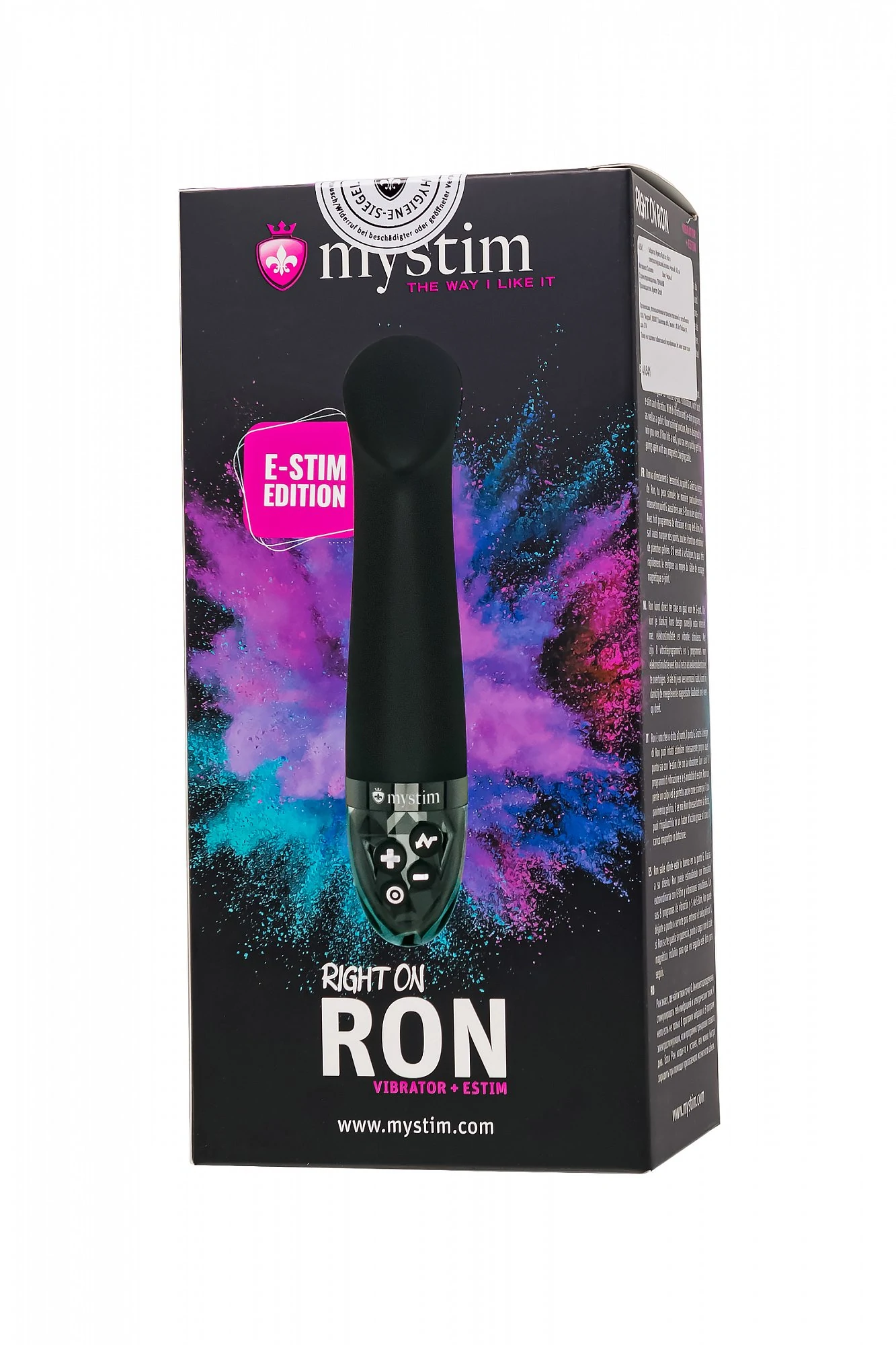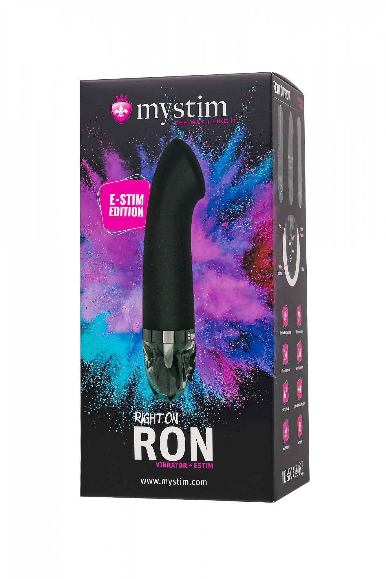 Right on Ron от бренда Mystim – вибратор, созданный для того, чтобы максимально раскрыть потенциал ваших оргазмов и подарить незабываемые ощущения. С уникальной комбинацией G-точечной стимуляции и электростимуляции, он перевернет ваше представление о сексуальных игрушках. С мягким изогнутым широким кончиком, Right on Ron безошибочно находит точку G, обеспечивая максимальное удовольствие. Рабочая длина всего 12 см, а диаметр 3,6 см, что делает игрушку максимально комфортной даже для неопытных пользователей. Благодаря уплощеному основанию вы можете использовать вибратор для любых эрогенных зон. Оснащенный 8 режимами классической вибрации, он стимулирует интимную зону и улучшает кровообращение, готовя ваше тело к волнам блаженства. Но настоящая изюминка в том, что Right on Ron предлагает 5 уникальных программ электростимуляции с 10 уровнями интенсивности. Для более комфортного использования рекомендуем приобрести смазку на водной основе и очищающий спрей Clear Toy 100 мл для обработки изделия.