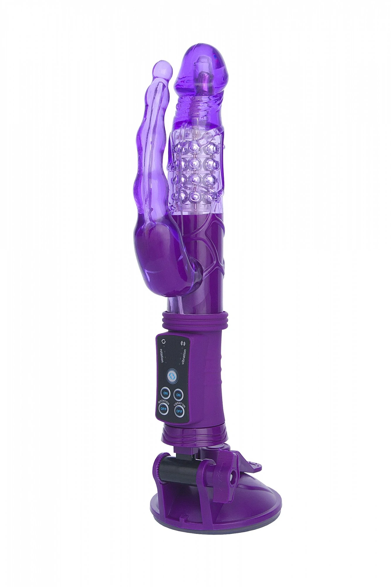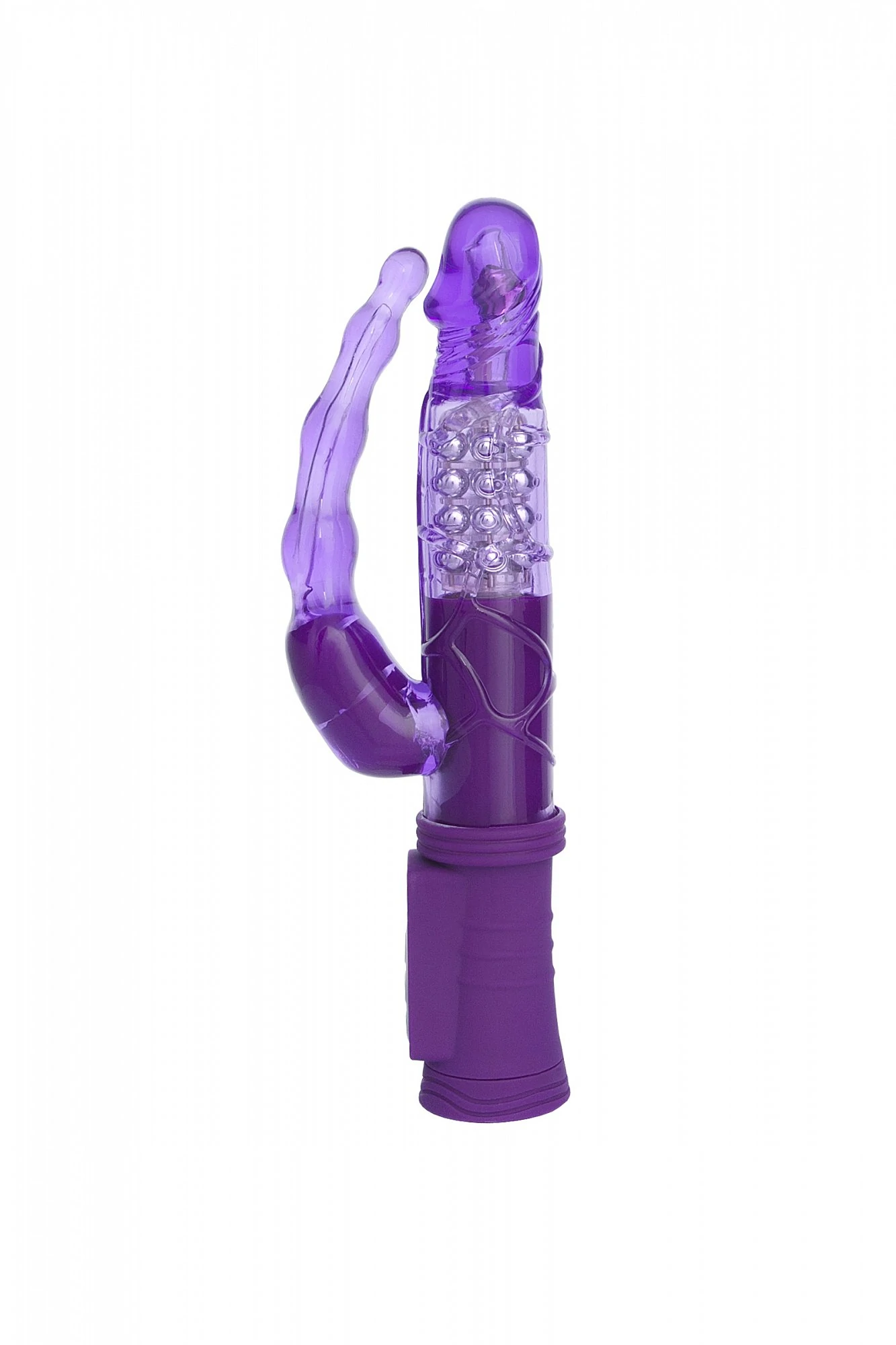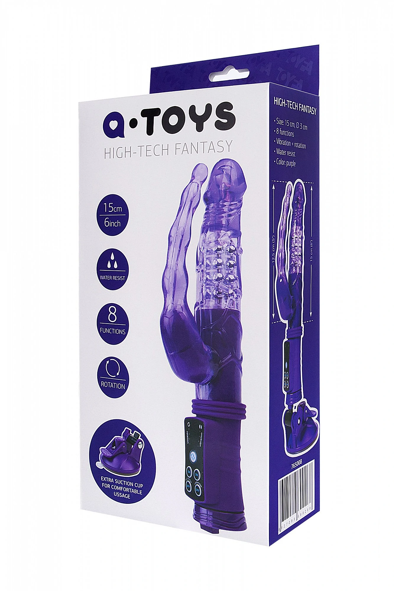 High-Tech fantasy - вибратор A-Toys с функцией вращения ствола и мощным анальным стимулятором. Имеет 8 режимов вибрации и ротации, скорость которых удобно управляется кнопками на рукояти игрушки. Интимная игрушка имеет специальный отросток в виде анальной елочки, что позволяет проводить одновременную стимуляцию вагины и ануса. Вибратор выполнен из высококачественного, легкого в эксплуатации, нетоксичного, гипоаллергенного, непористого материала TPR. Мощная присоска позволяет закрепить вибратор на любой вертикальной или горизонтальной гладкой поверхности. В стволе девайса размещено несколько рядов металлических шариков, которые многократно увеличивают возбуждающий эффект. Вибраторы A-Toys созданы для того, чтобы доставить незабываемое удовольствие! Для более комфортного использования рекомендуем приобрести смазку на водной основе и очищающий спрей Clear Toy 100 мл для обработки изделия.