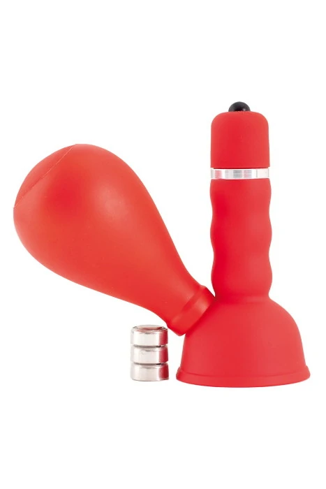С водонепроницаемой вибро-помпой Black&Red Вы сможете не только укрепить свои сосочки, но сделать их стоячими и более чувствительными к прикосновениям и ласкам. Стимуляция сосков практически у каждой женщины вызывает исключительно положительные эмоции, возбуждение и трепет. С внутренней стороны колбы расположены 7 мягких "усиков", которые во время массажа нежно ласкают Ваш сосок. Для получения более ярких ощущений во время стимуляции, Вы можете включить вибрацию, прикрепив массажер к груди. Для этого Вам нужно поднести помпу к соску, надавив на грушу, и приложить к нему. Стимулятор плотно присосется, а волнующая вибрация разольется приятной негой по всему телу. Вибрация плавная, многоскоростная. Размер: длина 8 см, диаметр 3,5 см.