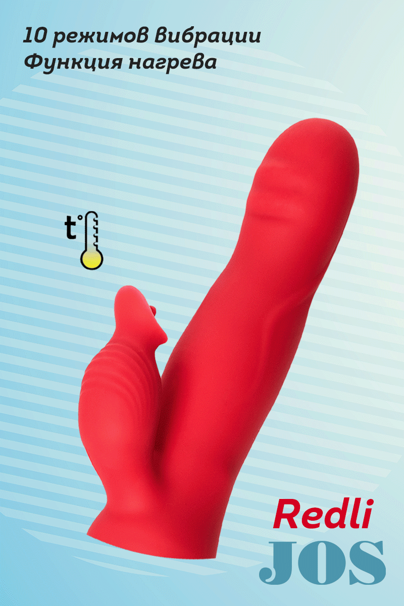 Вибратор с двигающейся головкой Redli от JOS – яркий и бойкий новичок в твоей прикроватной тумбочке. Redli не даст тебе скучать и доставит много приятных ощущений и ярких оргазмов. Мощная вибрация и возвратно-поступательные движения головки вибратора не оставят точку G без внимания. Ласковые и настойчивые движения гарантированно доведут тебя до оргазма. Клиторальный отросток будет нежно, но со знанием дела стимулировать эрогенную зону. Дополнит восхитительную игру функция нагрева – комфорт и реалистичность ощущений. Сочный красный цвет намекает на страсть и неистовые оргазмы. Размер: общая длина 21 см, рабочая длина 12 см, диаметр 3 см. Цвет красный. Для более комфортного использования рекомендуем приобрести смазку на водной основе и очищающий спрей Clear Toy 100 мл для обработки изделия.