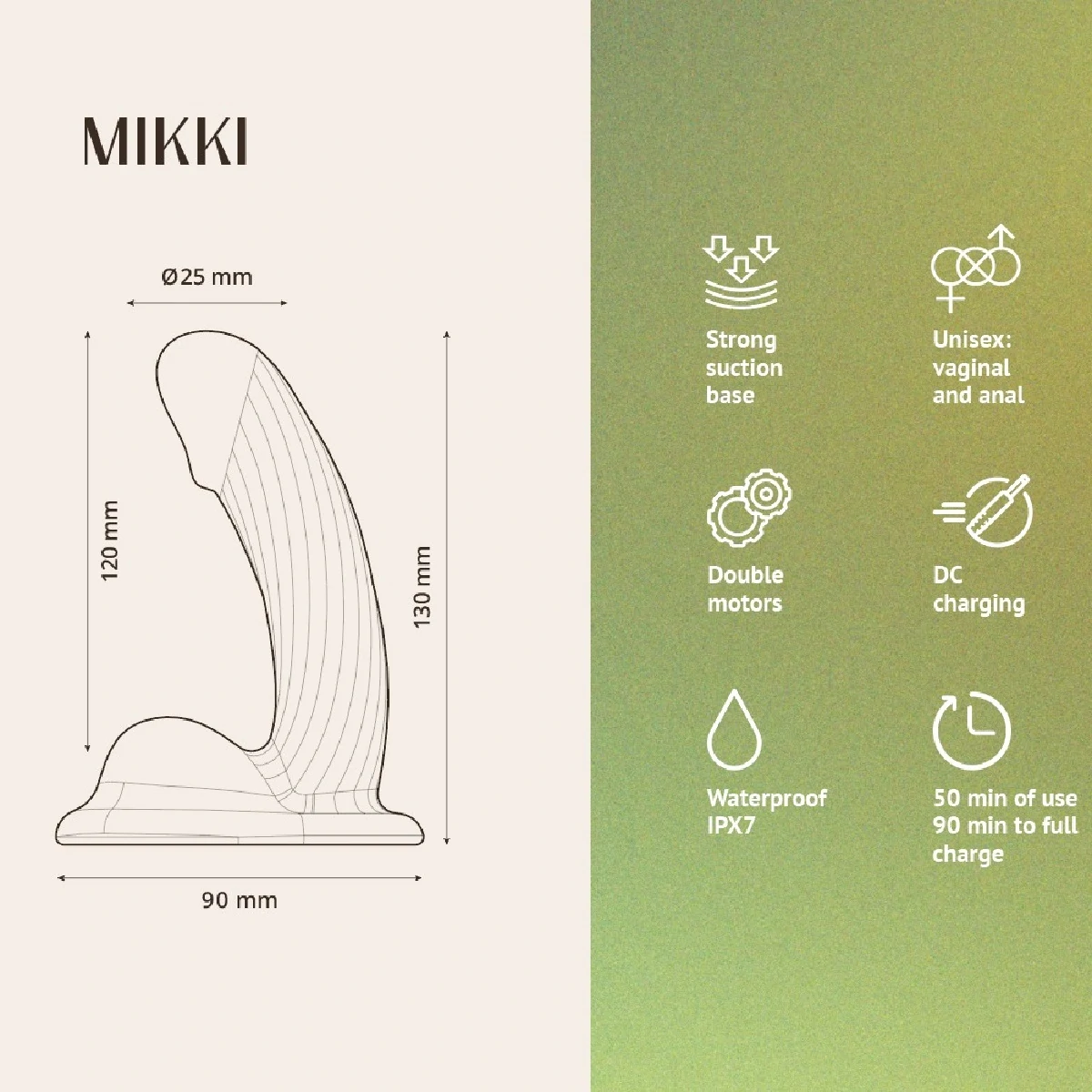 Mikki — Тактильный вибратор из премиум жидкого силикона с двойной стимуляцией и присоской это идеальный выбор для глубокого и разнообразного удовольствия, выполненный из ультра мягкого жидкого силикона.Его гибкая и рельефная форма усиливает ощущения, а два мощных мотора в стволе и основании присоски гарантируют интенсивную стимуляцию. Эта игрушка унисекс подходит как для анальной, так и для вагинальной стимуляции, открывая новые горизонты удовольствия. Присоска надежно фиксируется на гладких поверхностях. Удобное управление одной кнопкой делает использование Mikki простым и интуитивно понятным, позволяя легко переключать 10 режимов вибрации: зажмите кнопку на 3 секунды для активации. После включения игрушка выполнит короткую вибрацию, сигнализируя о готовности к работе. Размер: общая длина 13 см, рабочая длина 12 см, диаметр 2,5 см. Цвет: телесный. Для более комфортного использования рекомендуем приобрести смазку на водной основе и очищающий спрей Clear Toy 100 мл для обработки изделия.
