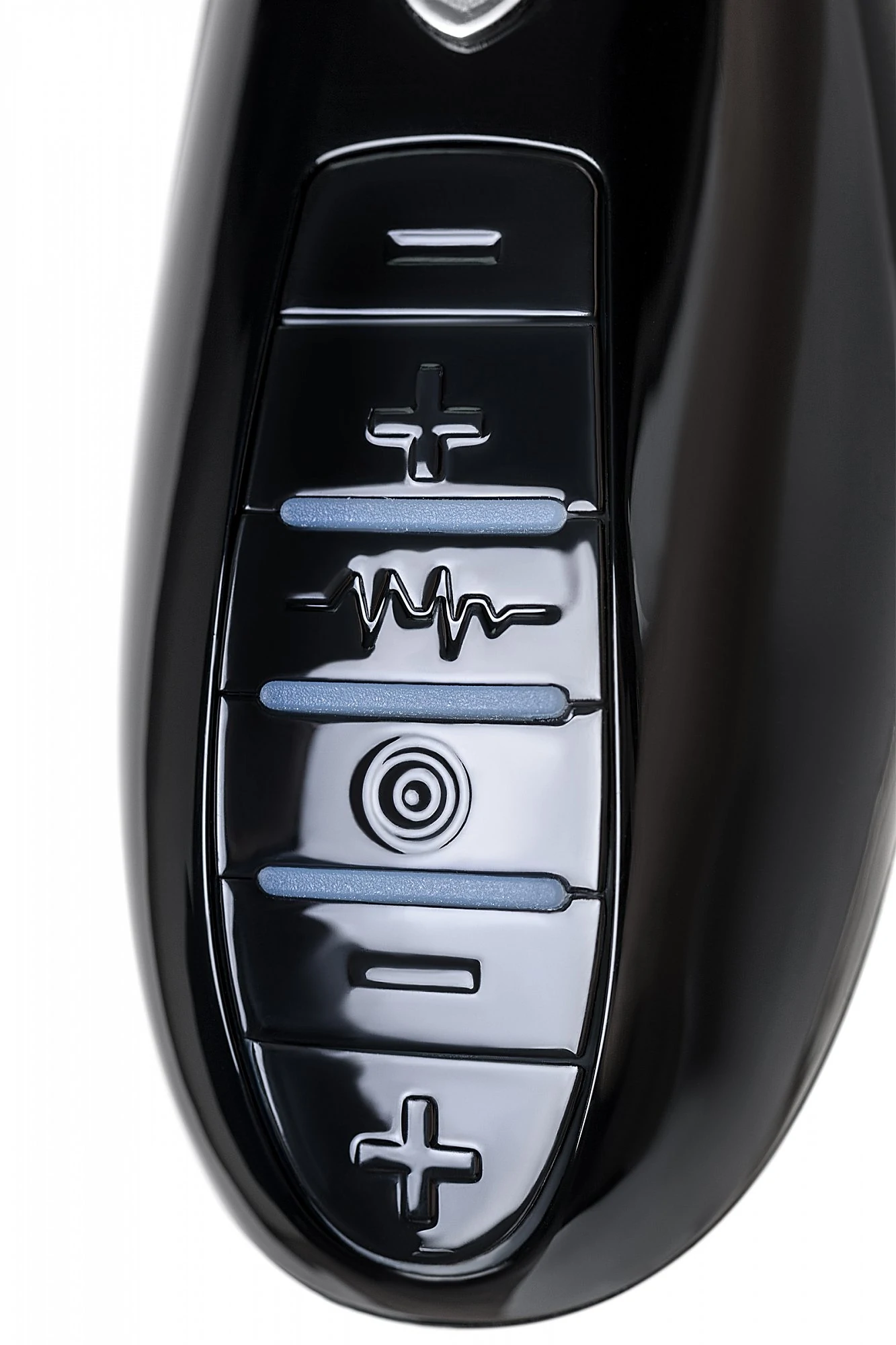 Вибрация + электростимуляция в элегантном черном цвете. Изгатовлен из 100% medical grade platinum silicone. Водонепроницаемый. Имеет 8 программ вибрации, 5 уровней интенсивности, 5 программ миостимуляции, 10 уровней интенсивности, 1 программа тренировки мышц влагалища. Размер: длина 27 см, диаметр 3,5 - 3,8 см. Вибрирует, покалывайт и пульсирует - все чего вы хотите!