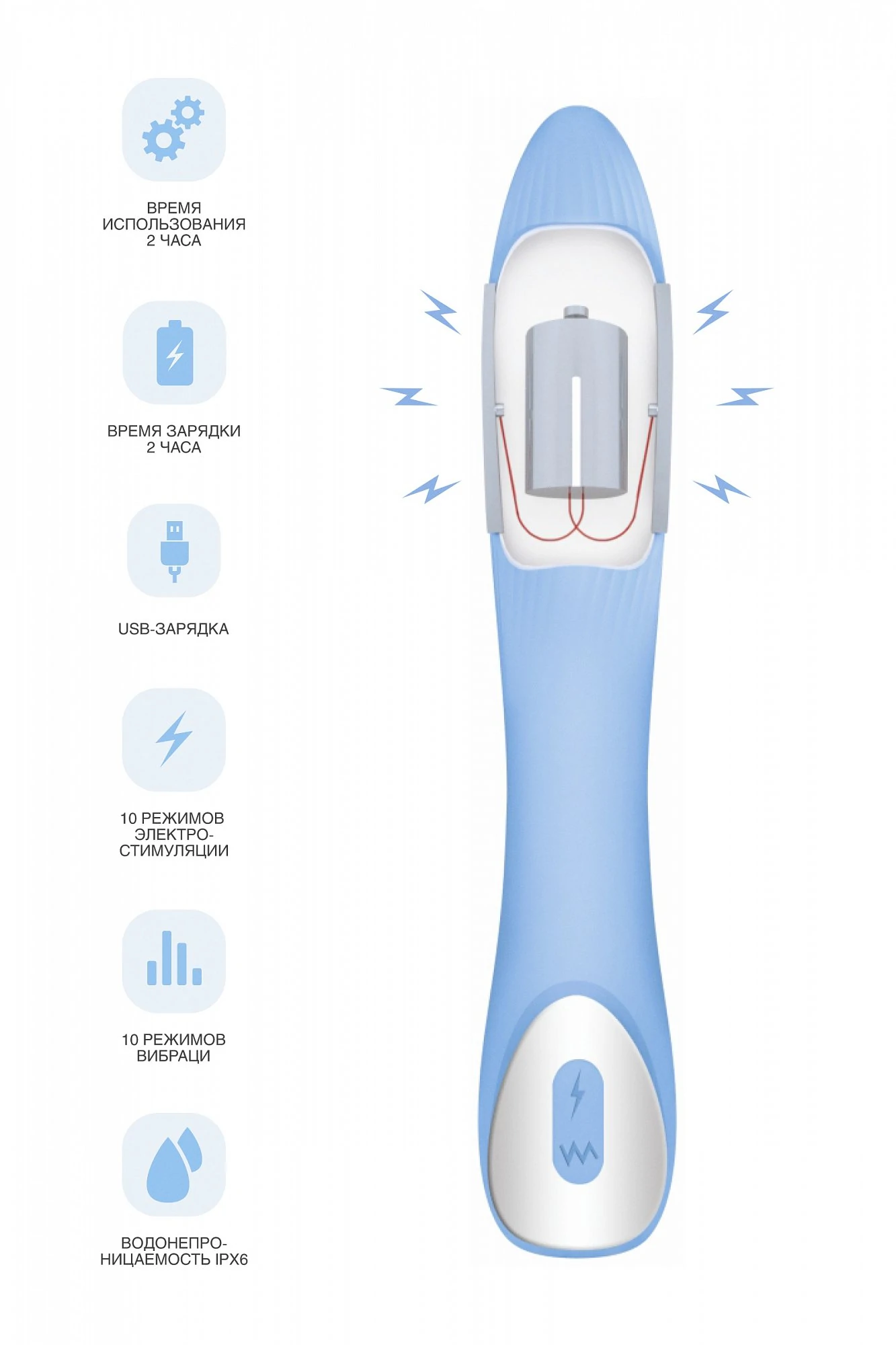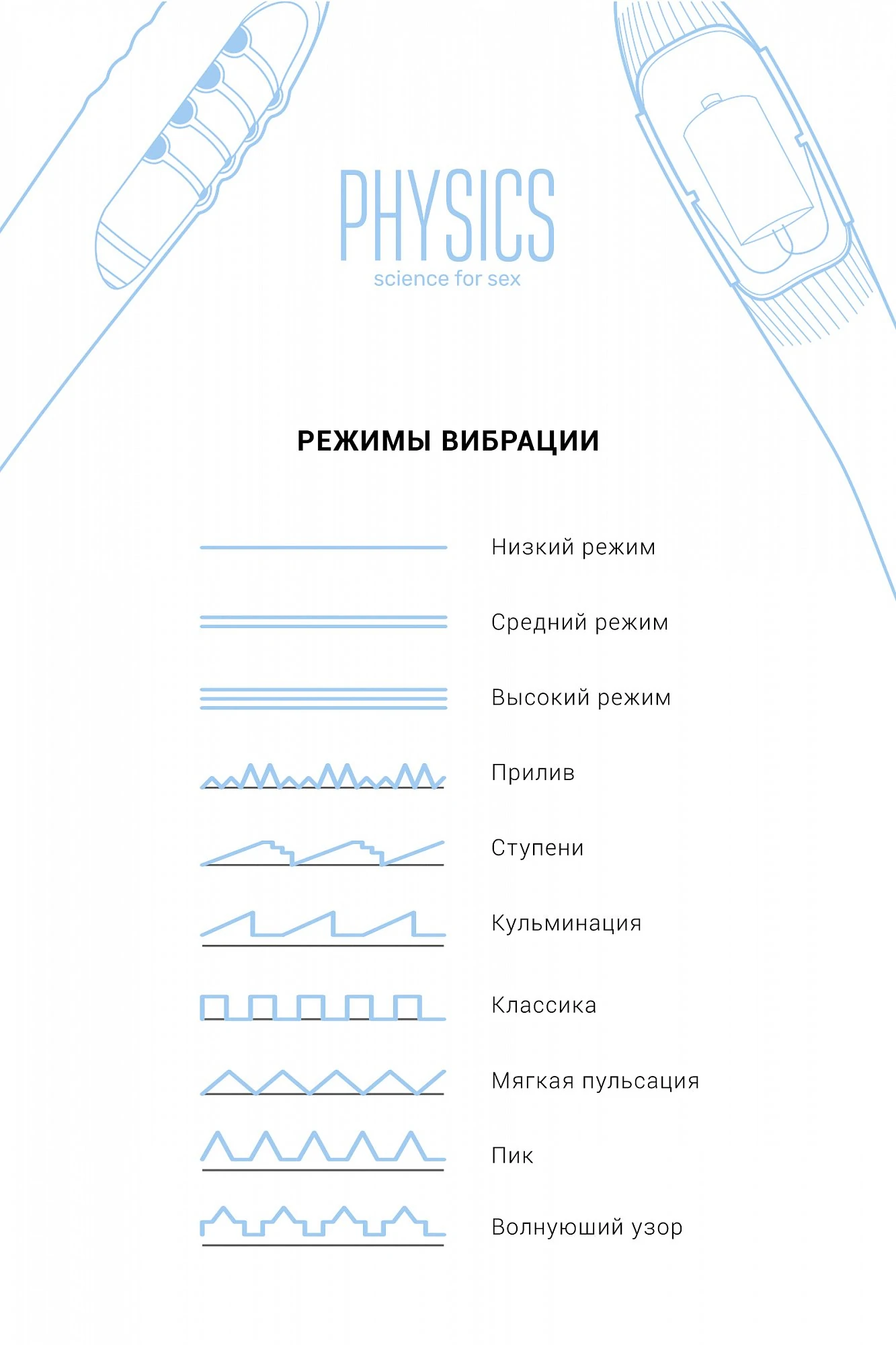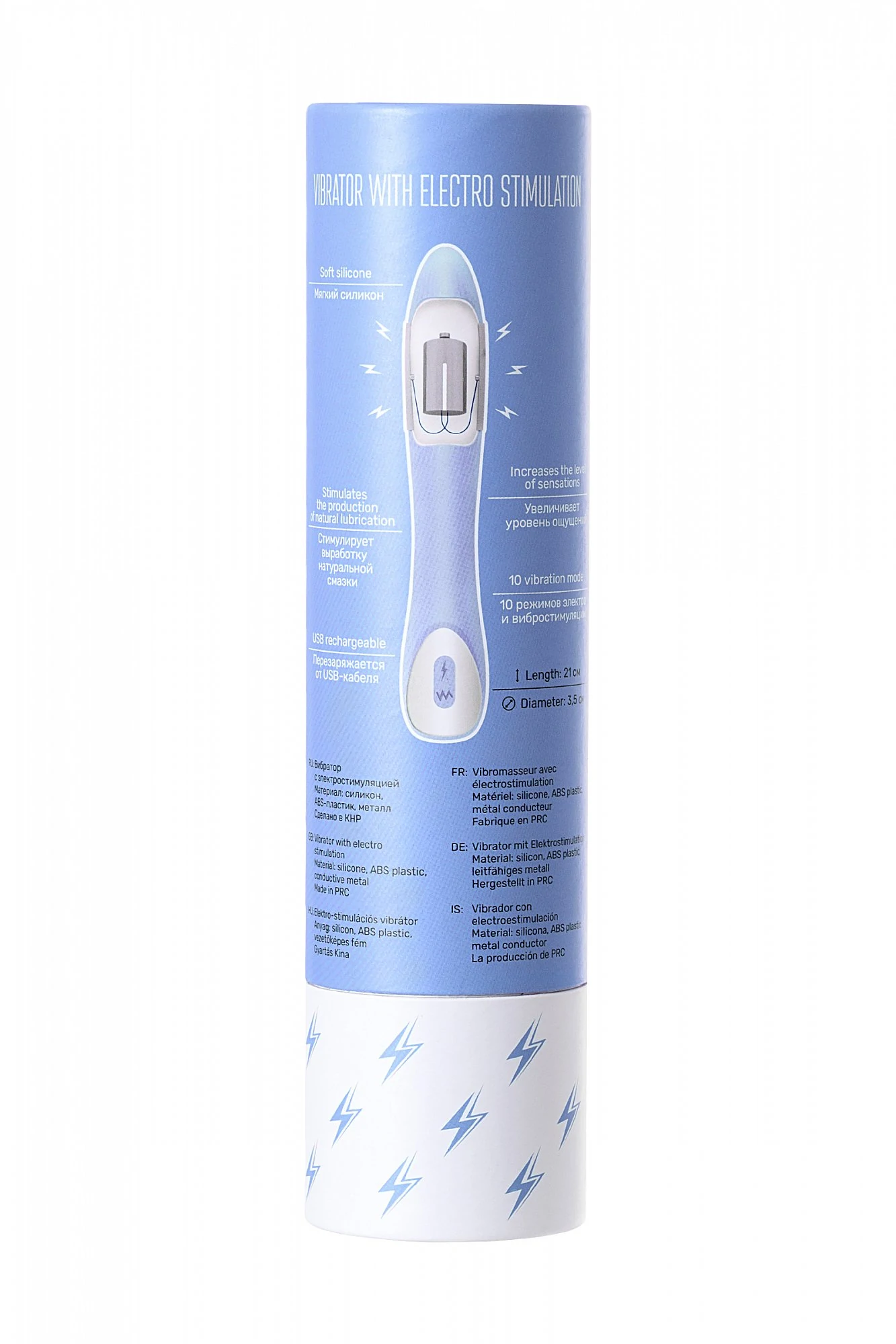 Новый бренд PHYSICS — наука для удовольствий! Игрушки разработаны с учётом законов физики и анатомии. Каждая игрушка дополнена функциями, воздействующими на организм девушки таким образом, чтобы доставить ей вспышку оргазма, сравнимую со вспышкой молнии. Вибратор с электростимуляцией PHYSICS TESLA G-POINT имеет 10 режимов электростимуляции и 10 режимов вибрации. Утончённый и элегантный дизайн разработан с учётом женской анатомии. Небольшой изгиб головки стимулирует точку G. Мягкий и нежный силикон приятен к телу, а также прост в уходе. Вибратор генерирует разряды микротока, которые ощущаются как нежное покалывание. Электростимуляция сокращает интимные мышцы, таким образом повышая их тонус. Оргазм с вибраторами Physics глубокий и насыщенный, благодаря притоку крови и кислорода к органам тазового дна. Цвет: голубой. Материал: силикон, ABS пластик. Размер: общая длина 21 см, рабочая длина 15 см, диаметр от 2,5 до 3,3 см.