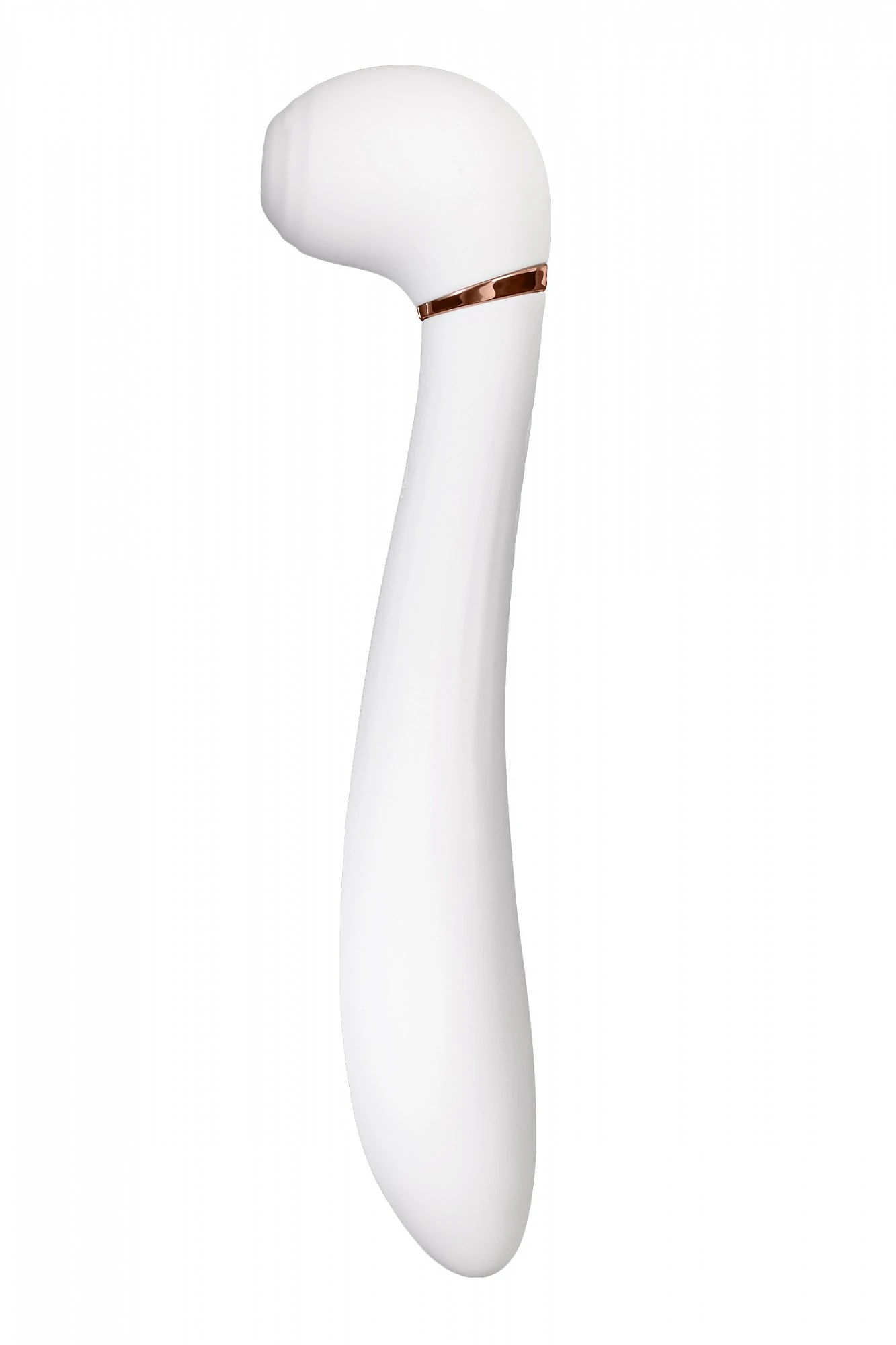 Раскройте перед собой мир настоящего блаженства с Jasmine от Flovetta - вибратором с вакуумной стимуляцией, созданным специально для истинных леди. Изысканный и нежный дизайн этой игрушки призван подарить вам глубокое и настоящее наслаждение. Мощная вибрация и вздутая головка вибратора будут ласкать ваши самые сокровенные уголки. Особенности: двойное возбуждение: Погрузитесь в океан наслаждения с вакуумно-волновой стимуляцией для яркого клиторального оргазма, а также классическим погружным вибратором для вагинальной стимуляции. Множество режимов: подберите идеальный режим среди 10 вариантов воздушно-волновой стимуляции и 10 режимов вибрации. Управление с легкостью: два мощных мотора управляются всего двумя кнопками, обеспечивая вам полный контроль над вашим наслаждением. Дизайн и материал: элегантный белый цвет символизирует чистоту и нежность. Материал легок в уходе, обеспечивая максимальную гигиеничность. Размер: общая длина 23 см, рабочая длина 12 см, диаметр 3,5 см. Рекомендуем смазку на водной основе.