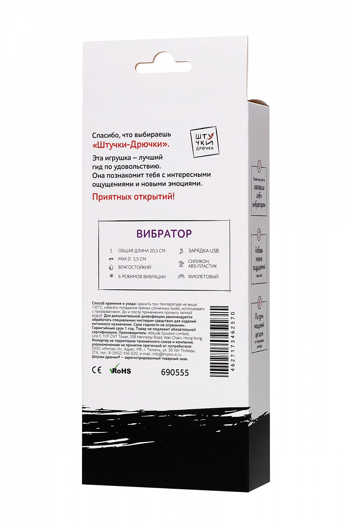 Вибратор Штучки-дрючки - обладает интересным дизайном и выдающейся формой, которая обеспечит незабываемые ощущения. Имеет 7 режимов вибрации. Изготовлен из высококачественного и приятного на ощупь, бархатистого силикона. Размер: общая длина 20,5 см, максимальный диаметр 5,5 см. Цвет: фиолетовый. Для более комфортного использования рекомендуем приобрести смазку на водной основе и очищающий спрей Clear Toy 100 мл для обработки изделия.