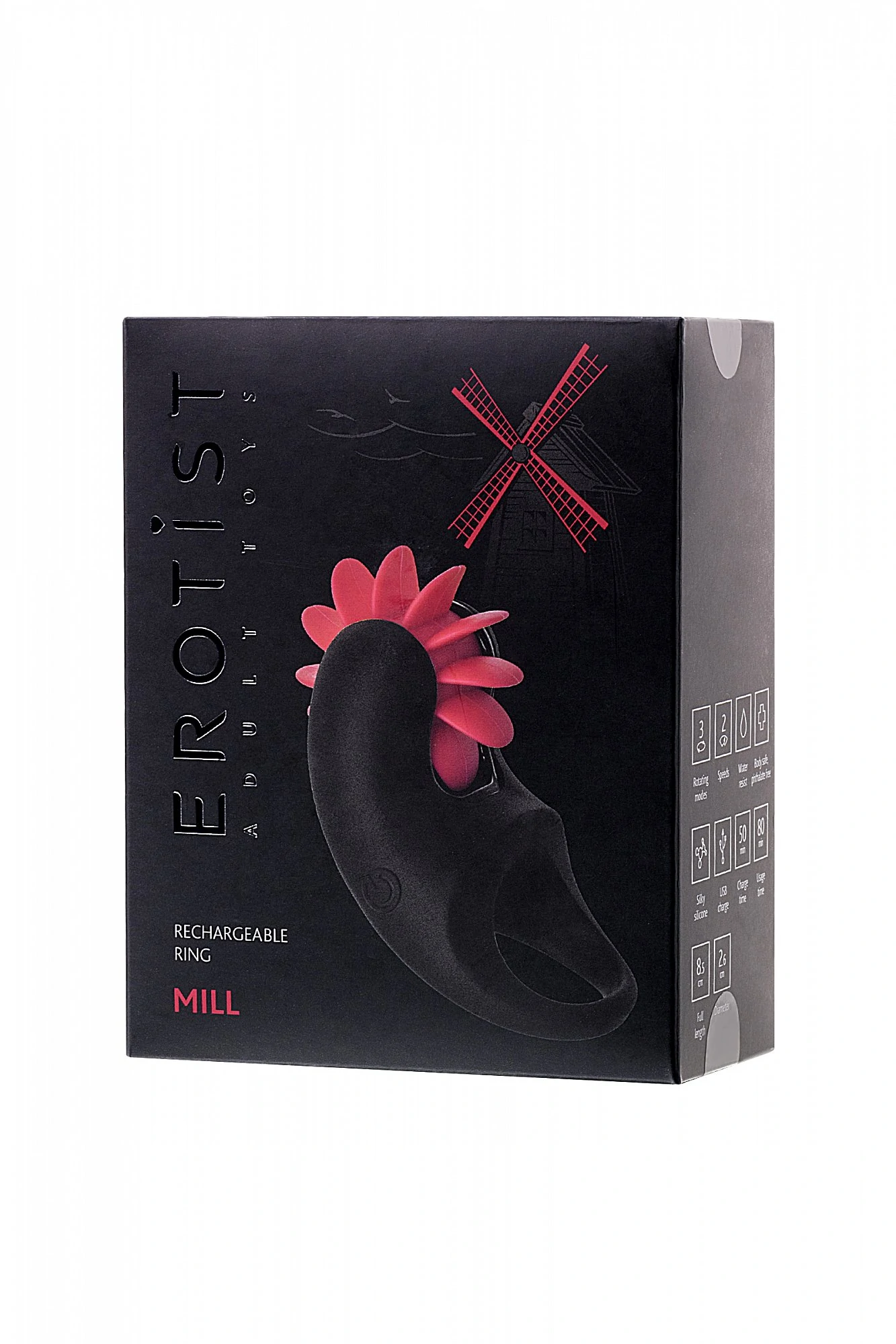 Откройте для себя новые ощущения с виброкольцом EROTIST! Эластичное силиконовое кольцо дает уникальную возможность усилить эрекцию, и продлить половой акт. Его также можно использовать, как вибростимулятор наружных эрогенных зон во время прелюдии. Стильный дизайн, мягкая как шелк поверхность, безопасный материал, влагостойкость, 3 режима ротации и 2 скорости, перезаряжаемый аккумулятор, сильный мотор, удобный интерфейс - все лучшее собранно для вас в одном устройстве! Время зарядки, 50 мин. Время работы устройства в активном режиме при полной зарядке 80 мин. Размер: длина 8,5 см, диаметр 2,6 см.